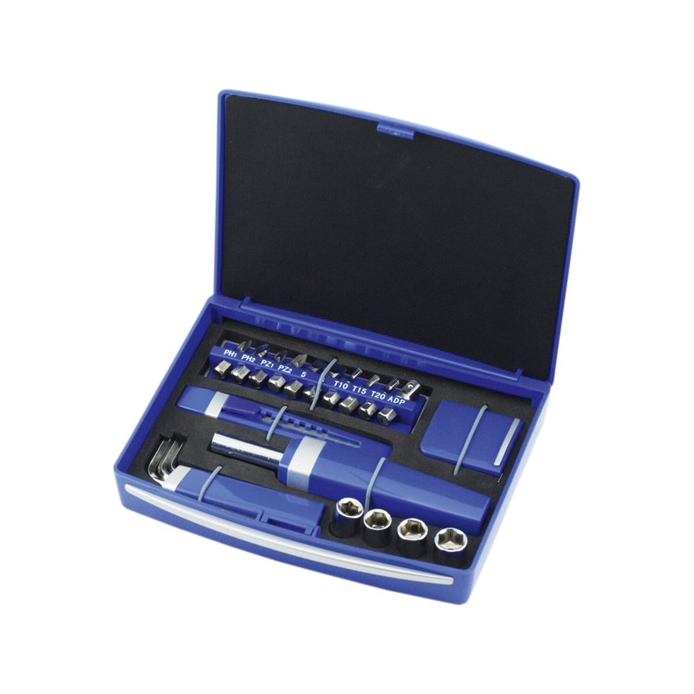 - Набор нужных в быту инструментов в количестве 20 штук прекрасно размещается в прочном и компактном футляре. Набор можно брать с собой, он не займет много места. В ассортименте два цвета.