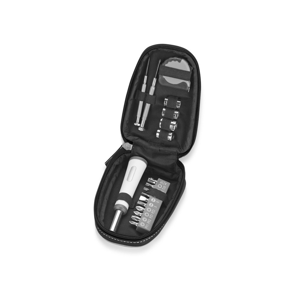 - Прочный, компактный чехол из кожзаменителя надежно фиксирует 18 самых необходимых предметов, входящих в набор инструментов. Набор прекрасно поместится в бардачке автомобиля и придет на помощь при внезапной поломке.