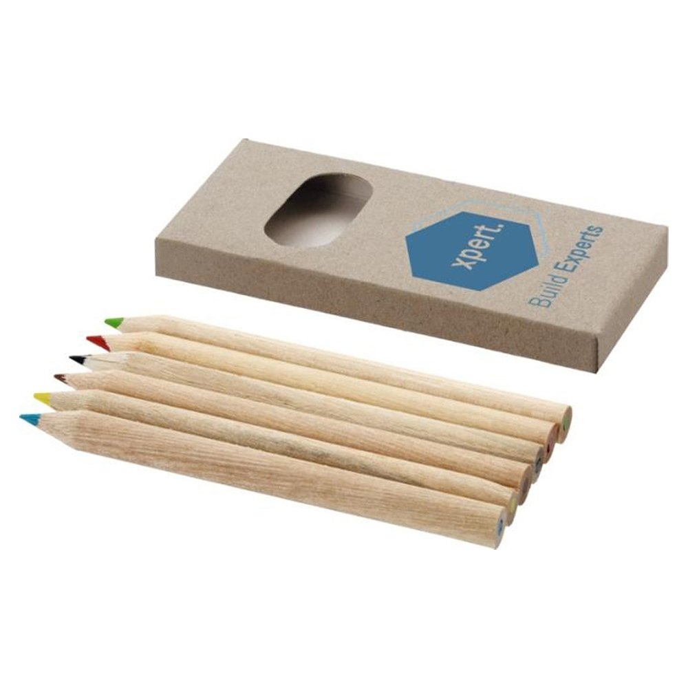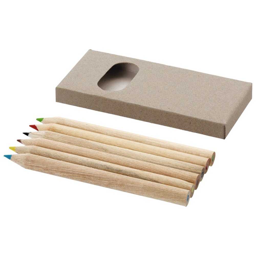 - Набор включает в себя 6 цветных карандашей из натурального дерева. На картонную коробку и карандаши можно нанести логотип организации.