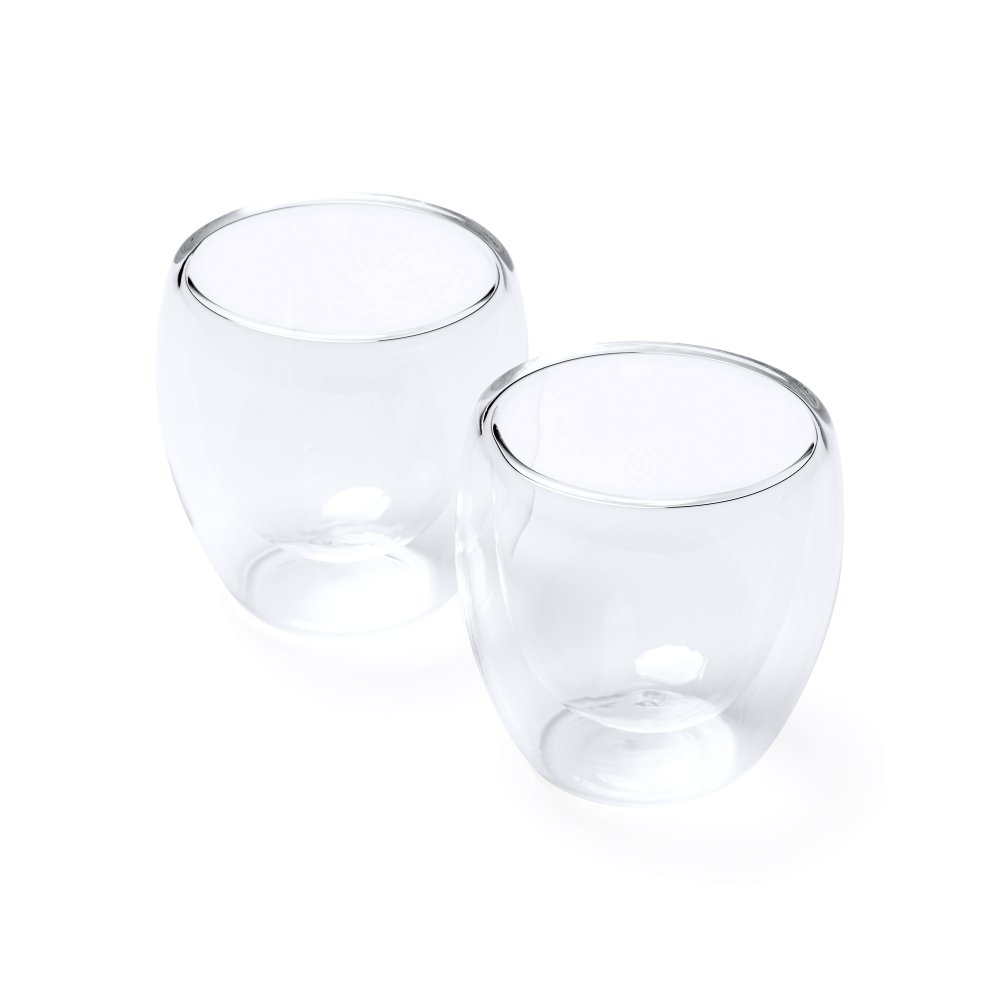 - Набор из 2 стаканов с двойными стенками из боросиликатного стекла. Емкость 90 мл.