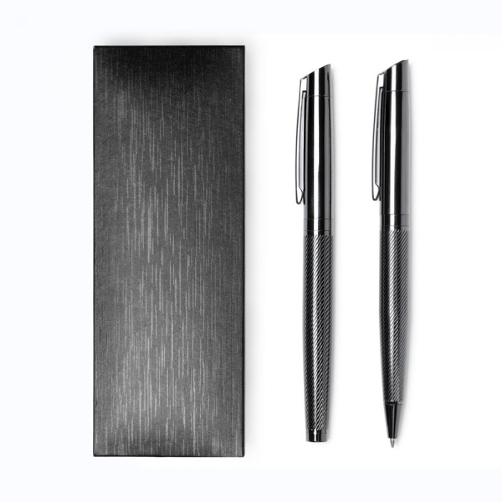 - Элегантный набор из ручки-роллера и выдвижного карандаша в темно-стальном корпусе. Поставляется в мягком кожаном футляре с внутренней подкладкой.