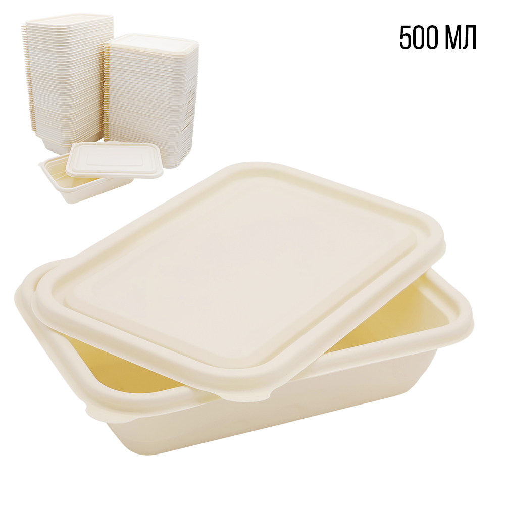 Набор контейнеров с крышкой из кукурузного крахмала, 500 мл (50шт) арт. A207