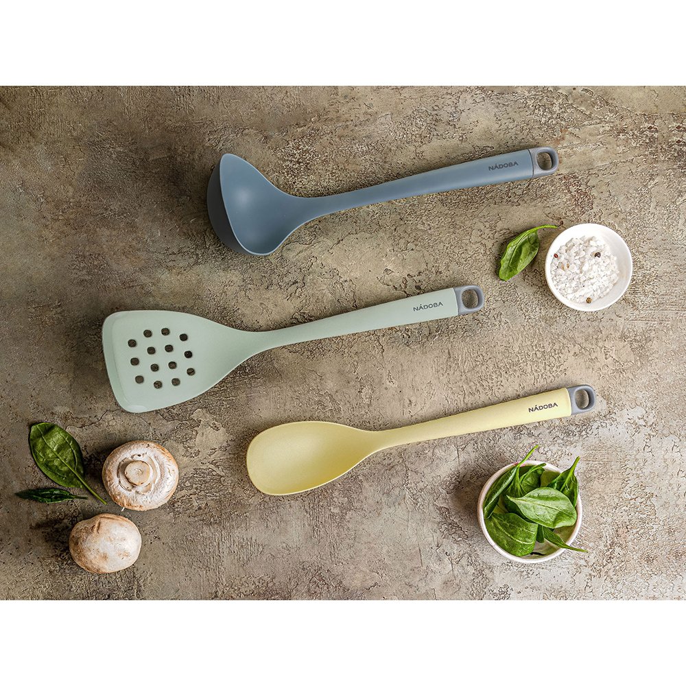 - Высококачественный пищевой силикон. Нейлоновый жаропрочный сердечник. Эргономичная силиконовая ручка. Широкий диапазон рабочих температур. Петля для подвешивания.