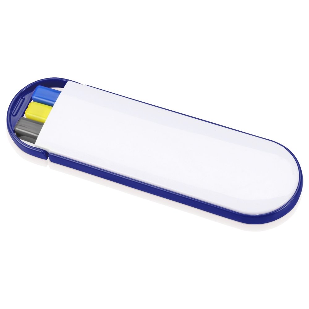 - Набор включает в себя шариковую ручку, маркер, карандаш и футляр. Возможность нанесения логотипа на футляр и корпус принадлежностей поможет сделать набор еще ярче.