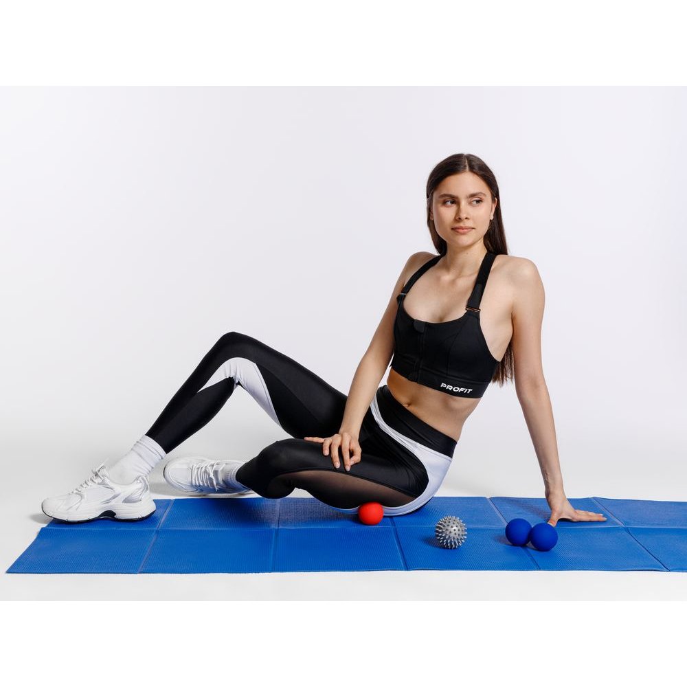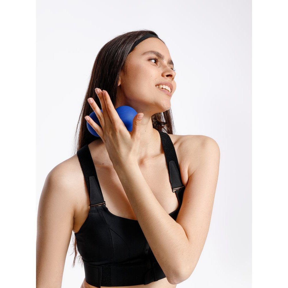 - Двойной синий мячик воздействует на мышцы вдоль позвоночника и шеи, мягко выравнивает осанку. Специальная выемка между мячиками предусмотрена, чтобы обезопасить и не травмировать позвоночник во время упражнений.