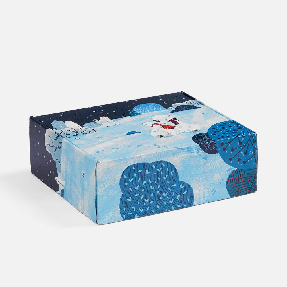 Все составляющие набора украшены милыми изображениями с белыми мишками — одним из главных зимних символов. Это дарит настоящее ощущение праздника — будто маленький очаг тепла, который всегда можно взять с собой.