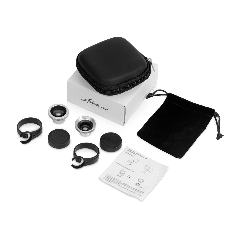 - Делайте более интересные фотографии своим смартфоном при помощи этого удобного набора объективов со специальными эффектами. Просто установите широкоугольный объектив или объектив «рыбий глаз» или «макро» на свой смартфон, чтобы делать фотографии с необходимыми эффектами. Взгляните на мир немного по-другому! Предлагается в подарочной коробке Avenue (размер: 8,5 x 8,5 x 3,5 см).