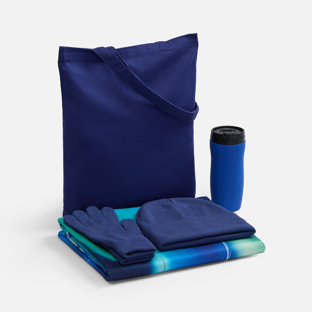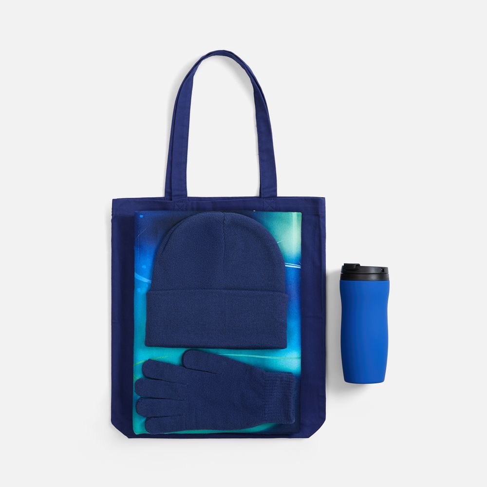 - Набор «Северное сиятельство» — это выражение заботы и нетривиальный комплимент в одном шопере! В нем тонко переплетены дух современного города и очарование северной сказки. Его элементы лаконичны и функциональны, а главная изюминка — живописный плед с изображением aurora borealis — добавляет ноту настоящего чуда.