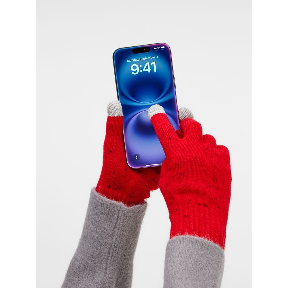 Перчатки Spotti Senso с токопроводящими волокнами на кончиках пальцев позволяют легко управлять смартфоном, не снимая их на морозе. Эргономичный крой и эластичная пряжа обеспечивают удобную посадку, сохраняя тепло и свободу движений. Как и в шапке, здесь использованы контрастные нити — визитная карточка коллекции.