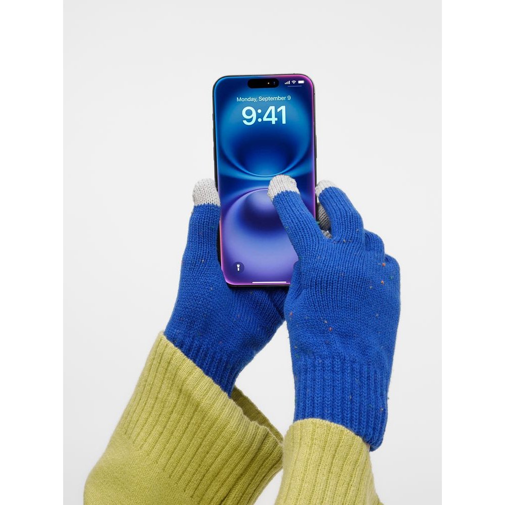 Перчатки Spotti Senso с токопроводящими волокнами на кончиках пальцев позволяют легко управлять смартфоном, не снимая их на морозе. Эргономичный крой и эластичная пряжа обеспечивают удобную посадку, сохраняя тепло и свободу движений. Как и в шапке, здесь использованы контрастные нити — визитная карточка коллекции.