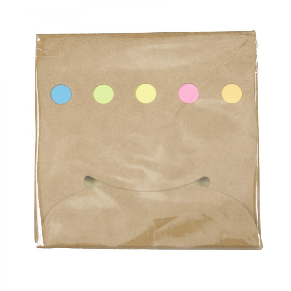 - Набор стикеров в крафтовой обложке. Размер 85х84х6 мм. 6 цветов. 20 стикеров каждого цвета с клеевым краем.
