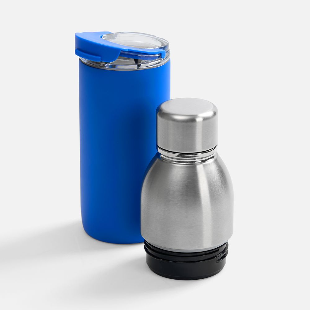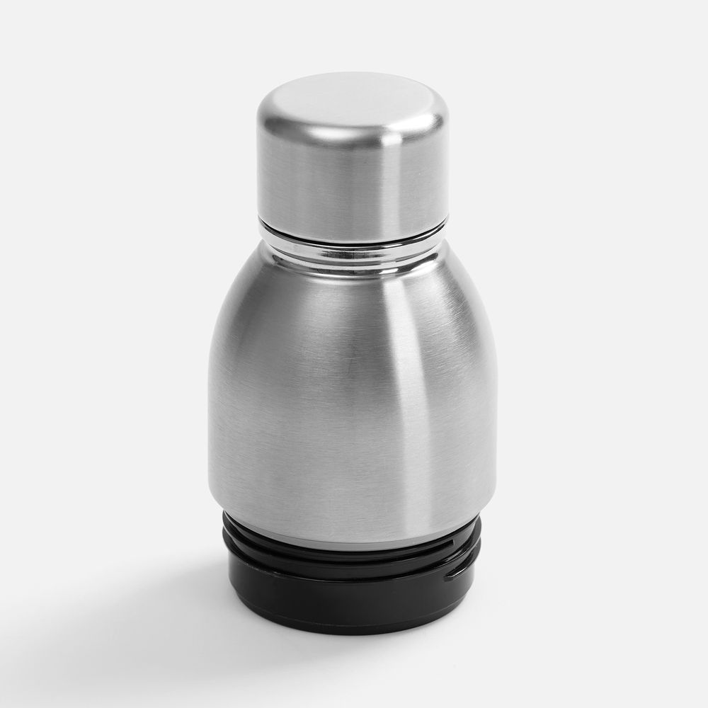 - Varianti — это яркий пример посуды с двойной функциональностью. Один и тот же корпус можно превратить как в термостакан для чая и кофе с пластиковой крышкой, так и в термобутылку для прохладительных напитков — с крышкой стальной.