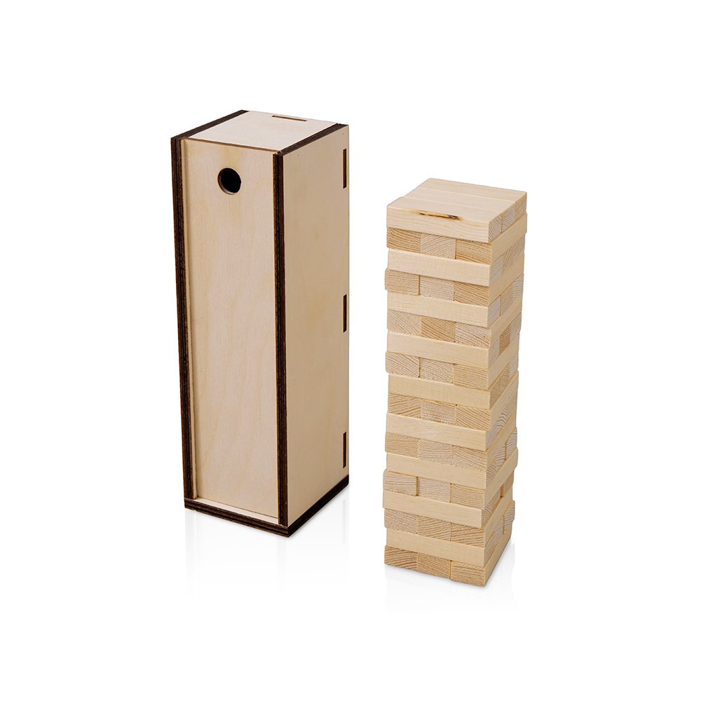 - Подарите себе и близким часы увлекательного досуга с классической игрой "Башня" в стильном деревянном исполнении. В комплекте — 54 бруска, изготовленных из натуральной сосны: лёгкие, прочные и приятные на ощупь. Все элементы аккуратно отшлифованы, что делает игру комфортной и безопасной даже для детей. Особое внимание заслуживает фирменная коробка — тоже из сосны, с удобной крышкой-слайдером. Она легко открывается и закрывается, надёжно фиксируя бруски внутри. Отлично подходит для хранения и транспортировки. А ещё — крышка и боковые стороны идеально подходят для брендирования: нанесите логотип, гравировку или памятную надпись — и получится оригинальный корпоративный подарок или сувенир.
