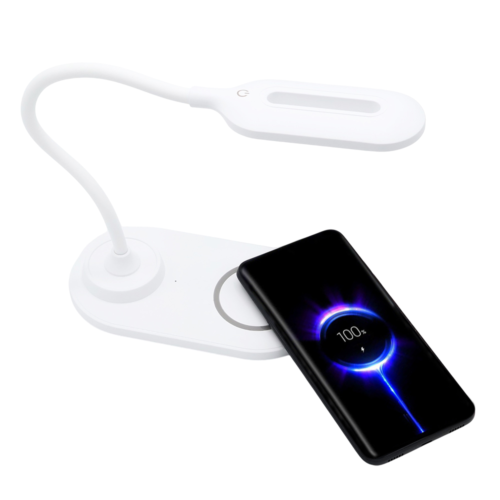 - Настольная лампа с беспроводной зарядкой. Совместимость – все мобильные телефоны с поддержкой Qi. Входной сигнал 5V-2A/9V-1.67A. Напряжение 5 Вт/7,5 Вт/10 Вт. Рабочая частота 110-205 кГц. В комплекте кабель USB и инструкция.