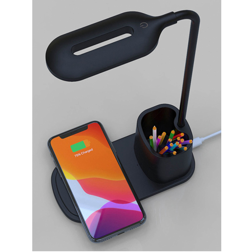 - Практичная настольная лампа Tenza для использования в офисе и доме. Стильный лаконичный дизайн и гибкое поворотное регулирование лампы удобно в использовании как на офисном столе, так и прикроватной тумбе. Возможность выбирать степень яркости света несомненный плюс. Держатель для ручек дополняет функциональность. И безусловный лидер популярности – это функция беспроводной зарядки Qi. Тип лампы LED (0.5 x 20 световых диодов. Цветовая температура 3000-6000К). Беспроводная зарядка 10W. Питание: 5V/2A / 100~240V/50-60Hz. В комплекте кабель USB и инструкция.