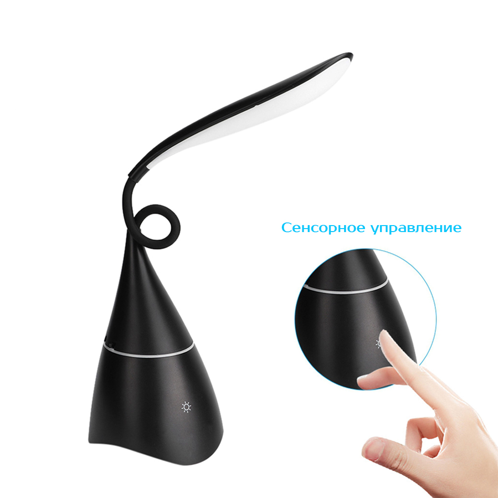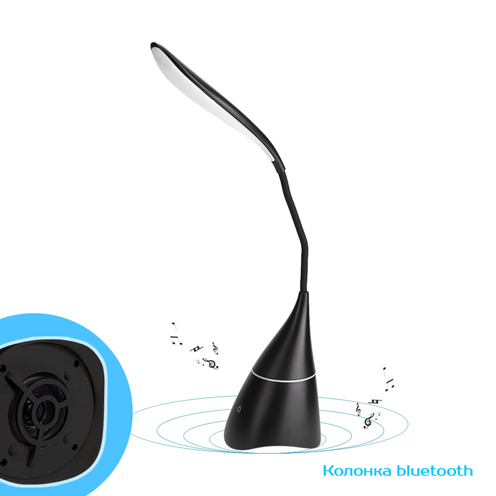 - Удивительно эргономичная настольная лампа Swanny порадует стильным дизайном и востребованными функциями. Красота и функциональность найдет свое место на офисном столе или журнальном столике квартиры. LED лампа с возможностью двух режимного освещения – теплый свет и яркий белый не утомляют глаза при длительном ночном чтении. Колонка bluetooth – это отличная опция для любителей музыки, а встроенная батарея позволяет свободно перемещать лампу и колонку. В комплекте кабель USB и инструкция. Тип лампы LED (18 диодов). Цветовая температура 3000-6000К. Мощность лампы: 3 Вт. Мощность колонки ≥ 85db. Bluetooth 4.2. Батарея Li-Ion 1200mAh/3.7V. Вход: 5V/2A/100~240V/50-60HZ.
