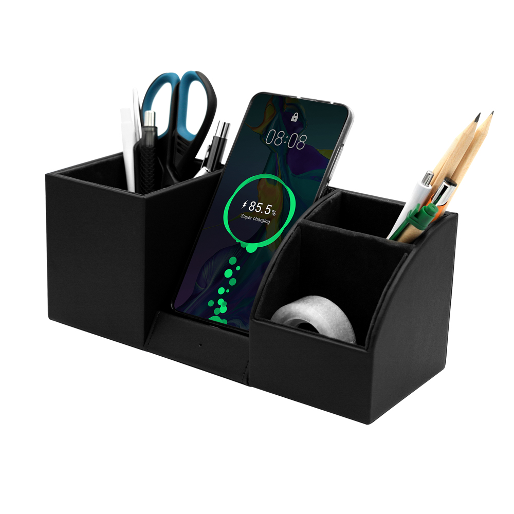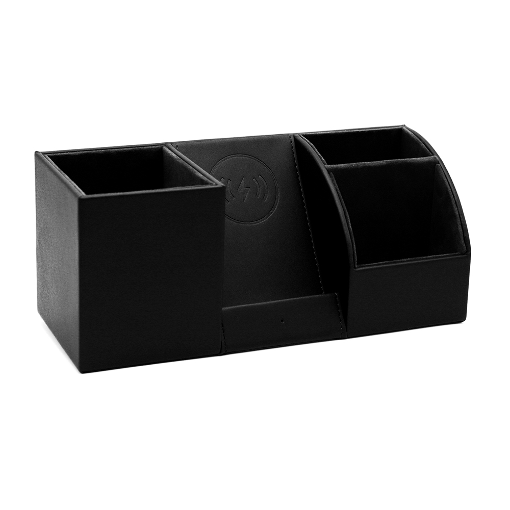 - Настольный органайзер Boss c беспроводной зарядкой и световым индикатором. Для работы или дома, сочетающий в себе подставку для канцелярских принадлежностей и мелких аксессуаров. Вход: 9V/1.67A/5V/2A USB 2.0. Выход: Беспроводная зарядка 10W. В комплекте кабель USB и инструкция.