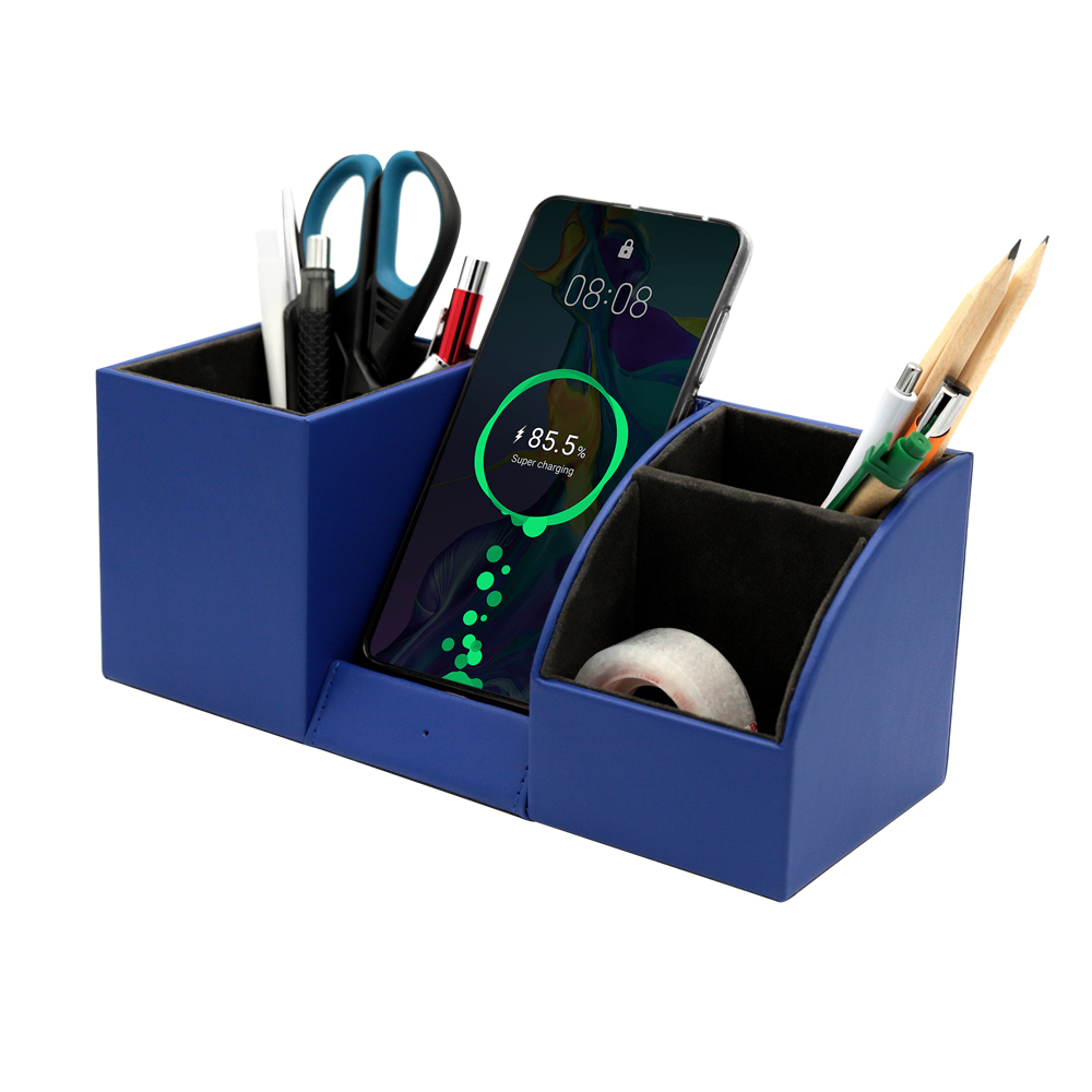 - Настольный органайзер Boss c беспроводной зарядкой и световым индикатором. Для работы или дома, сочетающий в себе подставку для канцелярских принадлежностей и мелких аксессуаров. Вход: 9V/1.67A/5V/2A USB 2.0. Выход: Беспроводная зарядка 10W. В комплекте кабель USB и инструкция.
