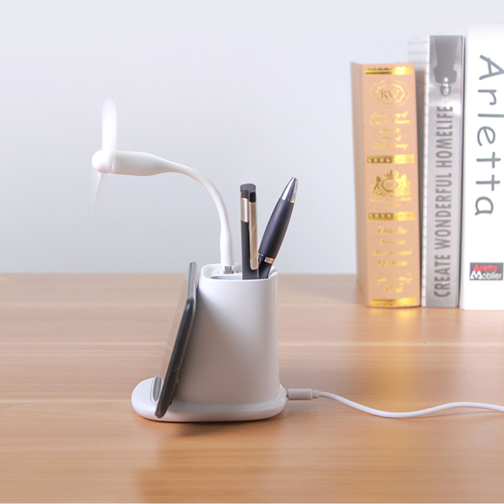 - Если вы ищите промосувенир, который на 100% будет долгие годы напоминать о вашем бренде, то Настольный органайзер Limerick – отличная идея. Благодаря данному подарку, его получатель организует свое рабочее пространство, сможет заряжать свой телефон при помощи беспроводной зарядки, а летний жаркий день немного освежиться благодаря вентилятору в комплекте. Комплекталия: кабель Type C, инструкция на русском языке, вентилятор, фонарик. Электропитание: 5V/2A. Выход: Бепроводная зарядка - 5w, USB - 5V/2A(Max).
