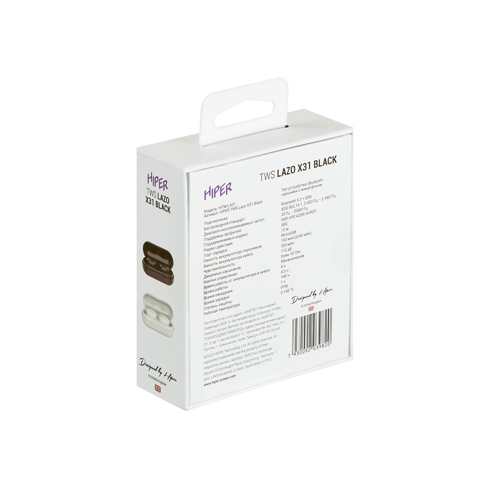 - LAZO X31 – это беспроводные стерео наушники для тех, кто ценит надёжность и классический дизайн в современном исполнении. Вы почувствуете максимальное удобство в управлении музыкой и входящими звонками. Внутриканальная конструкция наушников помогает надёжно зафиксировать их в ушной раковине. • Подключаются к смартфону или другому девайсу по Bluetooth 5.3. • Радиус действия сигнала 10 метров. • Чёткость звука обеспечивают динамики 8 мм, 32 Ом, чувствительностью 112 дБ. • Ёмкость аккумуляторов в каждом наушнике 25 мАч, время работы 3 часа. • Работа в режиме ожидания 140 часов, время зарядки всего 1 час. • Ёмкость аккумулятора кейса 300 мАч, время работы от аккумулятора в кейсе 6 часов. • Степень защиты IP54. • В комплект входят наушники, кейс, кабель Micro-USB, сменные амбушюры и инструкция.
