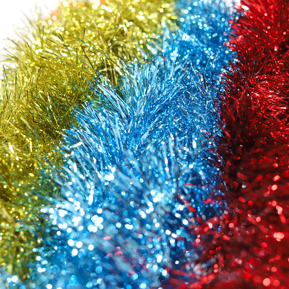 - Новогодняя мишура ( цвет: синий, красный, золотой).