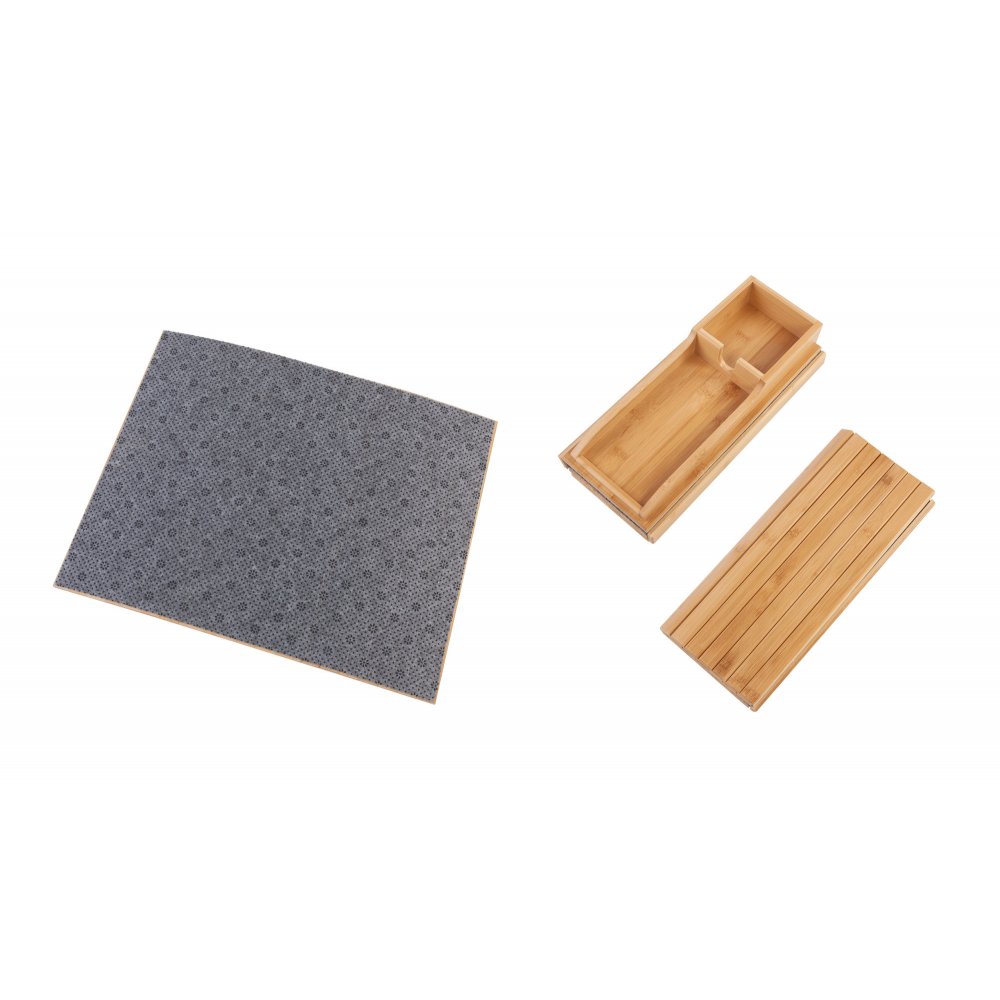 Благодаря реечной конструкции, органайзер можно легко разместить на кресле или диване. Нескользящее основание обеспечивает дополнительную фиксацию на различных поверхностях. Бамбук хорошо смотрится в любом интерьере. "Tray" идеально подходит как для дома, так и для офиса.