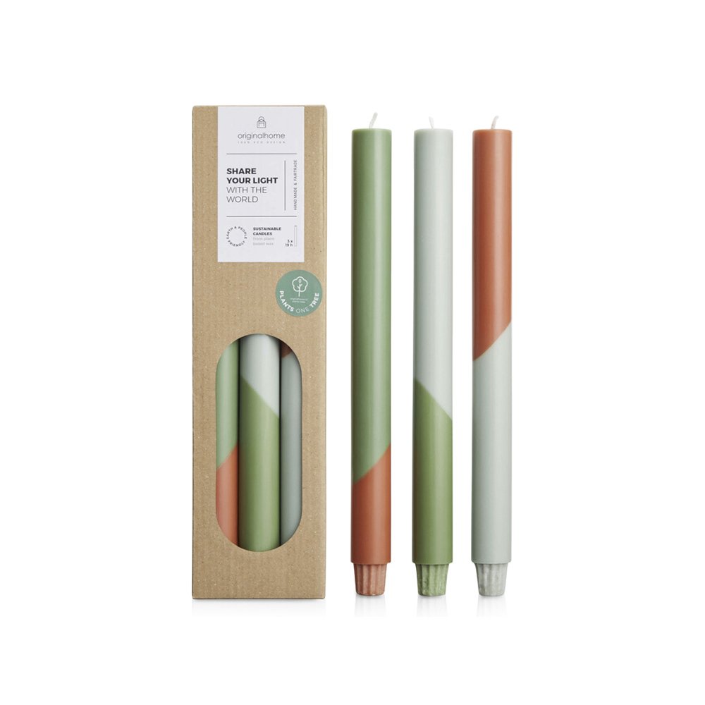- Свечи для ужина Eden отличаются яркой диагональной цветовой палитрой и изготовлены вручную из воска на растительной основе, не содержащего парафина. Они не имеют запаха, имеют фитиль из 100% хлопка и горят чисто. Каждая покупка способствует посадке дерева для фермеров в Африке и поддерживает специальный проект справедливой торговли на острове Ява, Индонезия. Комплект из трех штук. Время горения свечи: 18 – 20 часов. Воск из пальмовых ядер.