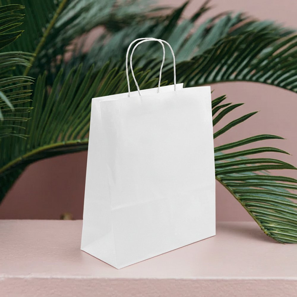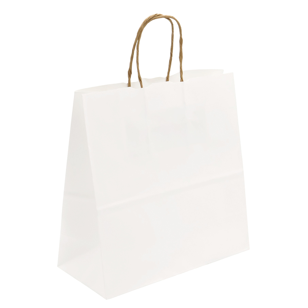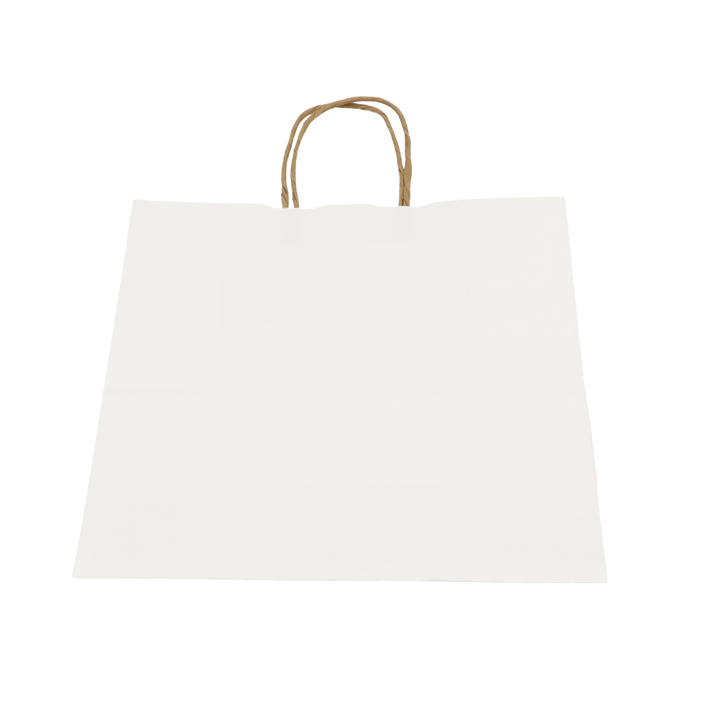 Бумажный пакет плотностью 110 г/м², с усиленными короткими ручками витой формы.