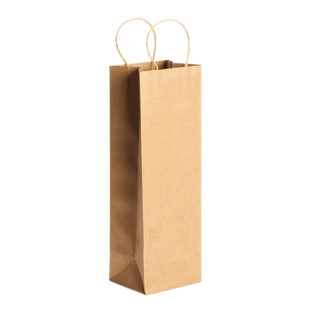 - Бумажный пакет плотностью 100 г/м² натурального цвета. Усиленные короткие ручки витой конструкции. Идеально подходит для бутылок.