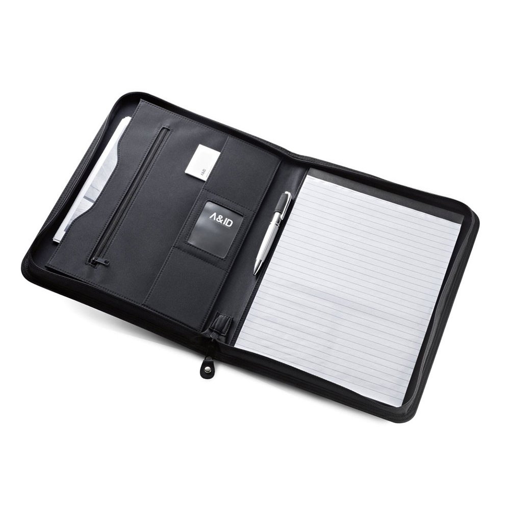 - Папка формата А4 из искусственной кожи и микрофибры. Папка имеет несколько внутренних карманов, блокнот из 20 листов в линейку и держатель для шариковой ручки (ручка не входит в комплект). Доступна пластинка для персонализации. 245 x 325 x 40 мм | Пластина: 16 x 45 мм. Вид нанесения, рекомендуемый поставщиком: гравировка, трансфер.