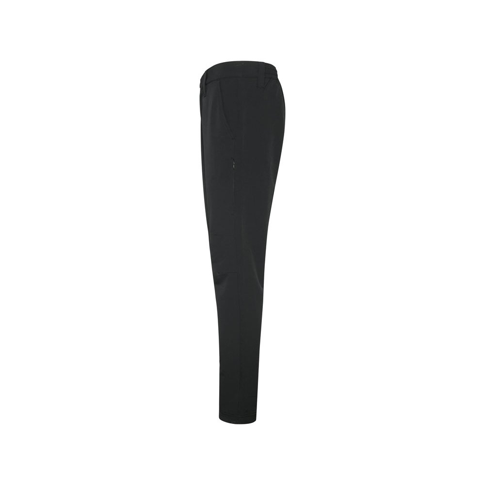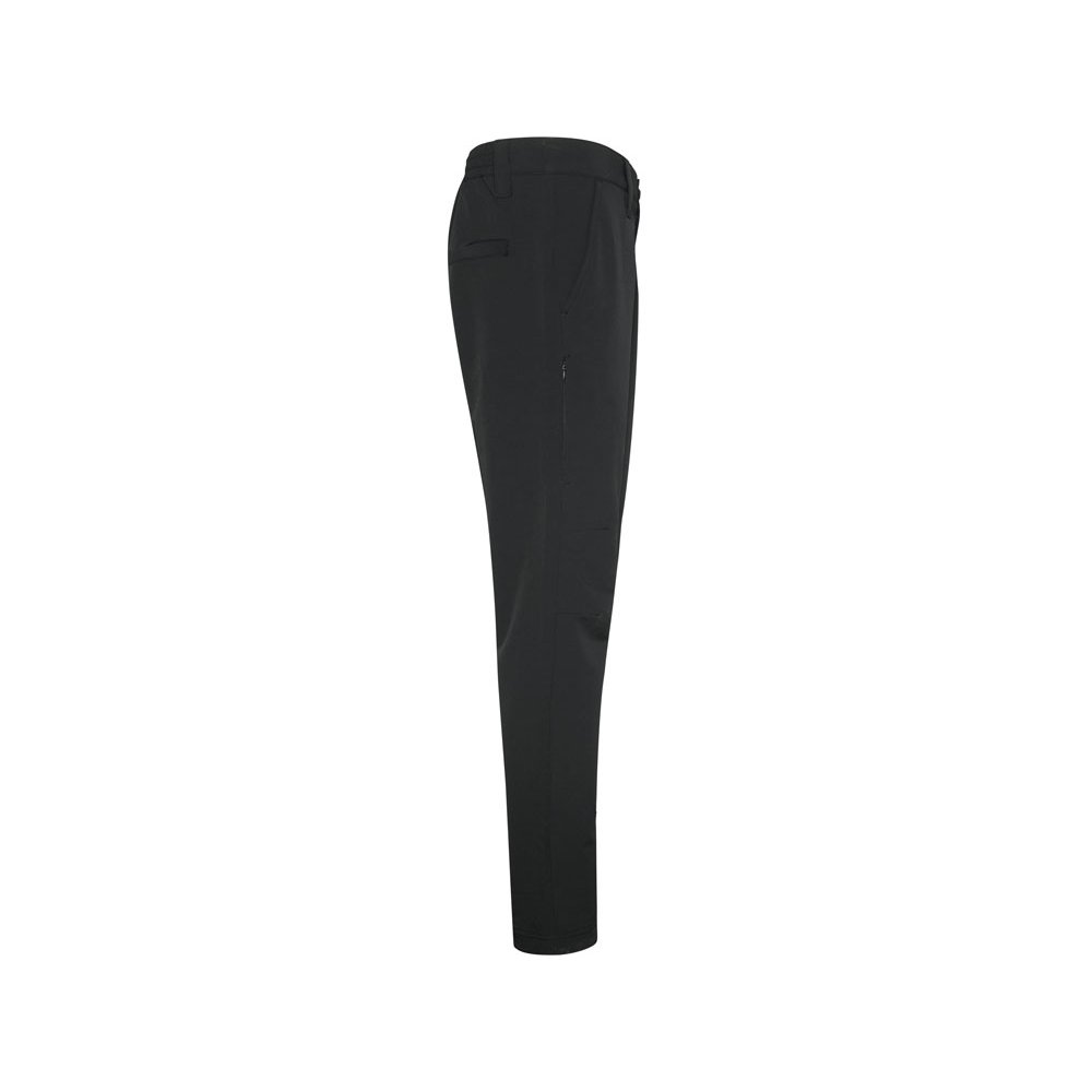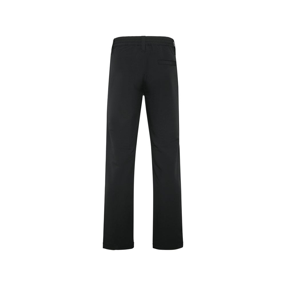 - Длинные брюки унисекс из техничной ткани. - Регулируемый эластичный пояс. - Шлевки. - Два боковых наклонных кармана. - Два боковых кармана в швах на потайных молниях. - Задний карман на кнопке. - Защипы на коленях. - Двойной шов на внутренней стороне штанин, шаговом шве и подгибе низа. - Пластиковые регуляторы с эластичной резинкой по низу.