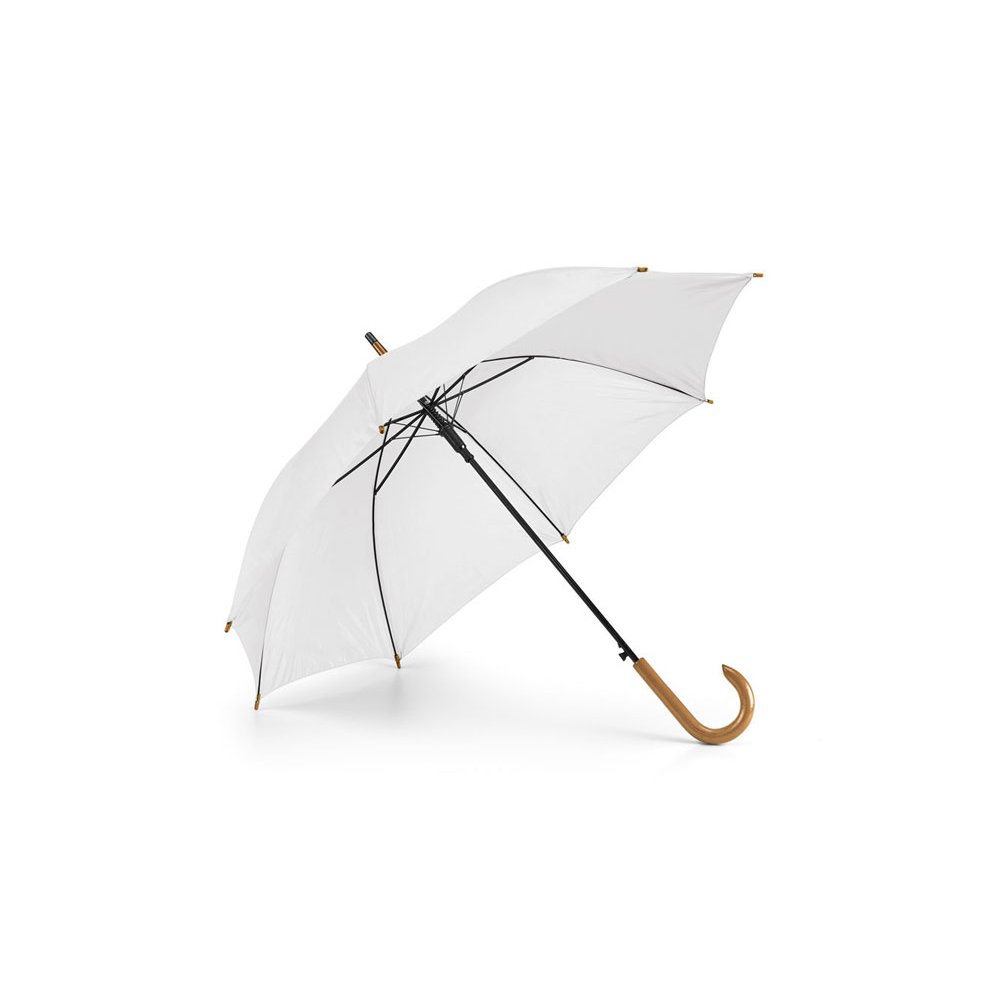 - Зонт из полиэстера плотностью 190Т с металлической тростью и ручкой из дерева и с автоматическим открытием. ø1040 мм x 885 мм