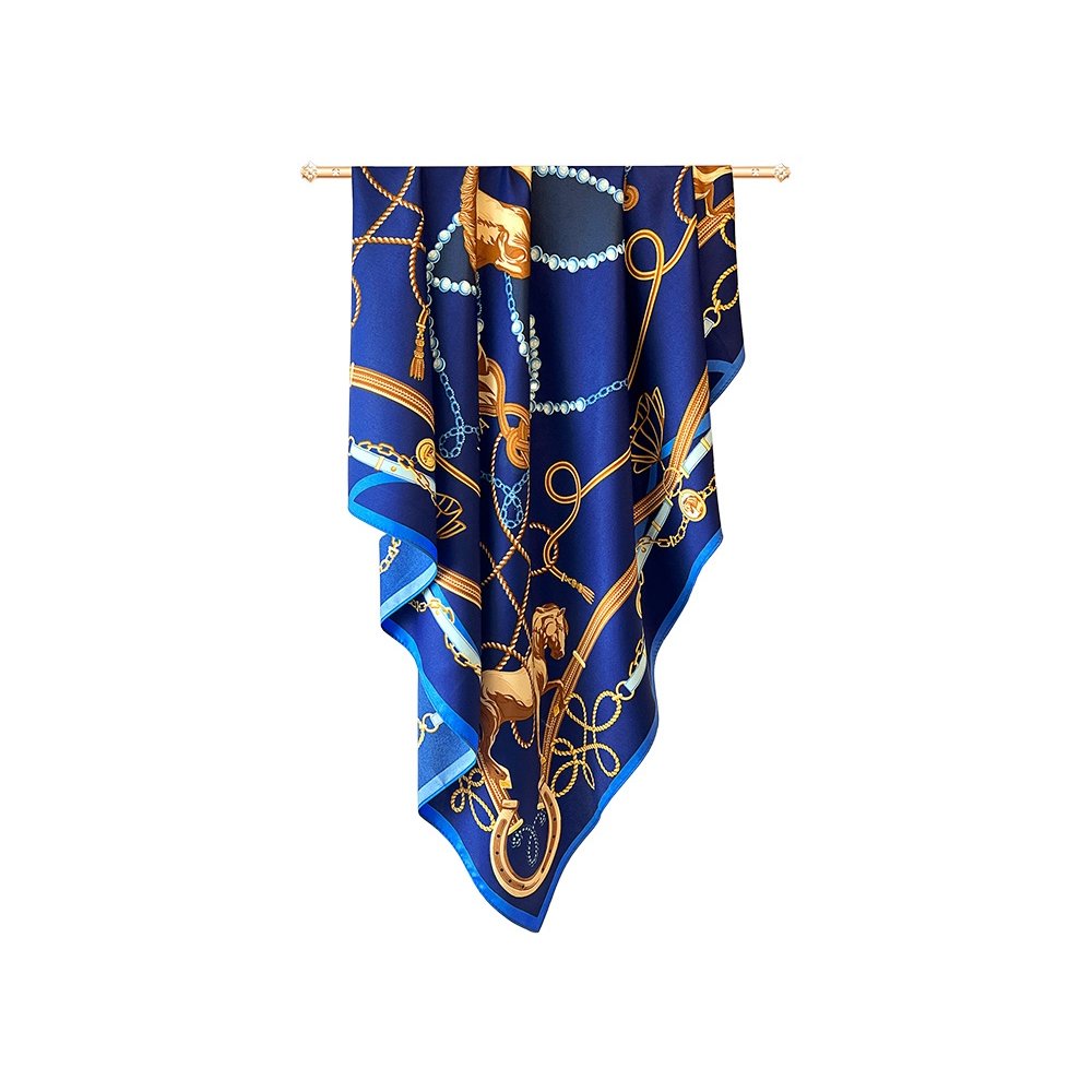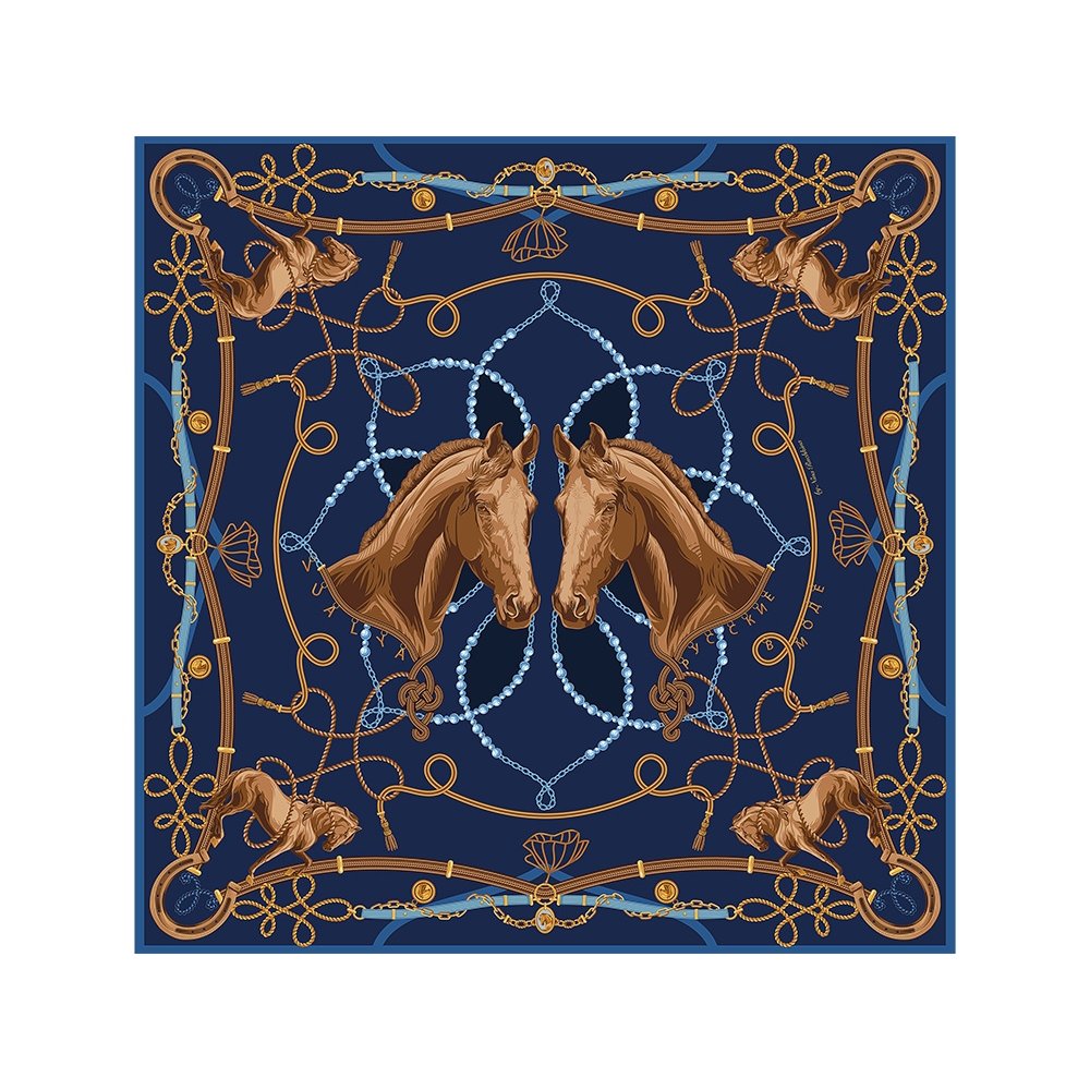 - Платок «Конный клуб» вдохновлен духом русского аристократизма, тесно связанного с традициями верховой езды. Образ лошади, занимающий особое место в изобразительном наследии России, — от древнерусской миниатюры до современных шедевров живописи — ассоциируется с благородством, честью и внутренней силой. Платок воплощает эти возвышенные качества, отраженные в природной эстетике конного экстерьера. В центре композиции размещены стилизованные портреты лошади элегантной рыжей масти. Ощущение воздушной среды и размах открытых просторов переданы сочетанием светло-бежевых, золотых, голубых оттенков фона. Рисунок изящной амуниции образует ажурный декор с акцентными элементами, заключая изображение в эффектную рамку. Платок «Конный клуб» создан брендом «Русские в моде» совместно с маркой VUA-LYA, производителем одежды и аксессуаров. Платок станет изысканным атрибутом стиля или незабываемым прекрасным подарком! Над дизайном платка работали: Нина Ручкина, Ольга Данилова.