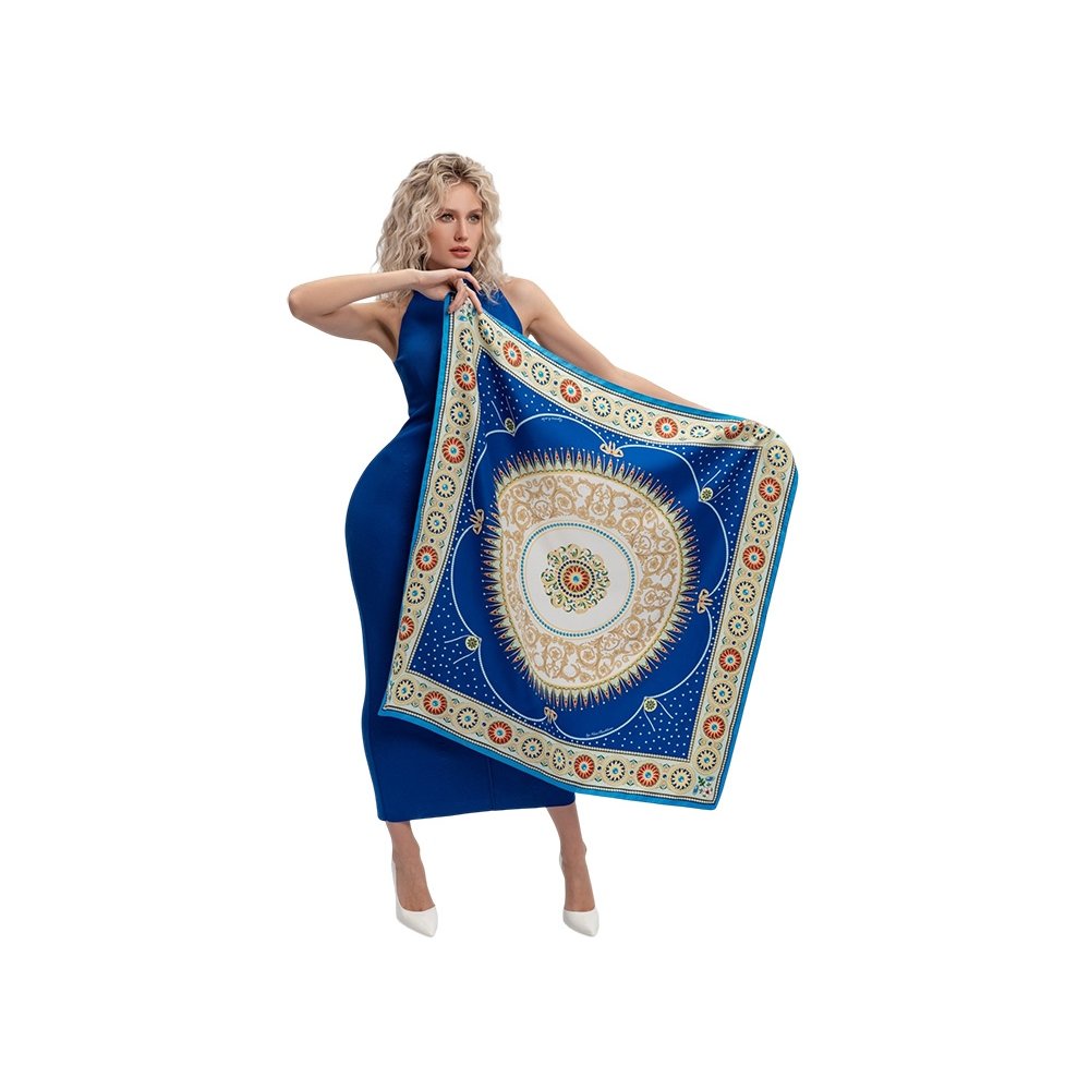 - Платок «Севрский фарфор» создан брендом «Русские в моде» совместно с Музеем-заповедником «Павловск» и вдохновлен бесценным шедевром из исторической коллекции Павловского дворца – Севрским фарфоровым сервизом. В центре полотна размещен изящный медальон, повторяющий оригинальный рисунок севрского фарфора, выполненного в ювелирной технике накладных эмалей и словно украшенного россыпью драгоценных камней. Цветовой строй воспроизводит парадную эстетику дворцового фарфора, где глубокий королевский синий в сочетании с золочёным орнаментом образуют гармоничное звучание. Выразительный платок «Севрский фарфор» станет изысканным акцентом вашего образа или памятным подарком, воплощающим великолепие павловских коллекций и пробуждающим ощущение подлинной роскоши. Над дизайном работали: Нина Ручкина, Серафима Атаянц.