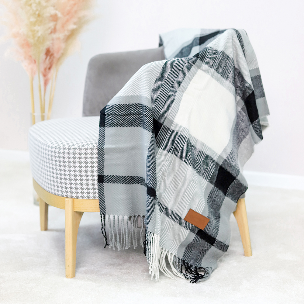 - Плед GLAMA изготовлен из высококачественной акриловой пряжи, что позовляет добиться мягкости и тепла как от натуральной шерсти. Благодаря составу плед легкий, хорошо сохраняет теплоизолирующие свойства и надолго радует внешним видом. Также гипоаллергенен, не накапливает статическое электричество и легко стирается. Плед имеет классический узор “scotch”, с бахромой по краям. Для нанесения логотипа предусмотрена нашивка из кожзама (8x4 см). Плед упакован в пластиковый пакет, сложен в виде рулона с текстильным держателем.