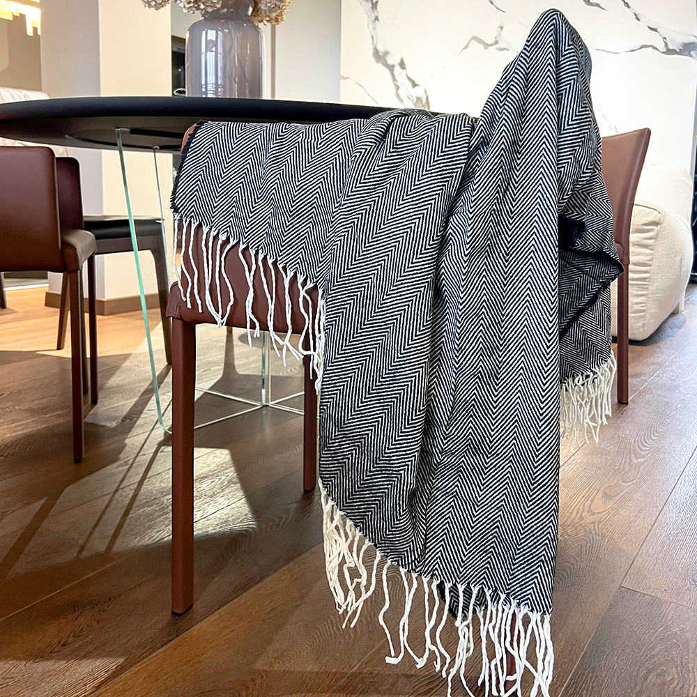 - Плед SAMUM изготовлен из высококачественной акриловой пряжи, что позовляет добиться мягкости и тепла как от натуральной шерсти. Благодаря составу плед легкий, хорошо сохраняет теплоизолирующие свойства и надолго радует внешним видом. Также гипоаллергенен, не накапливает статическое электричество и легко стирается. Плед имеет классический узор “елочка”, с бахромой по краям. Для нанесения логотипа предусмотрена нашивка из кожзама (8 x 4 см). Плед упакован в пластиковый пакет, сложен в виде рулона с текстильным держателем.