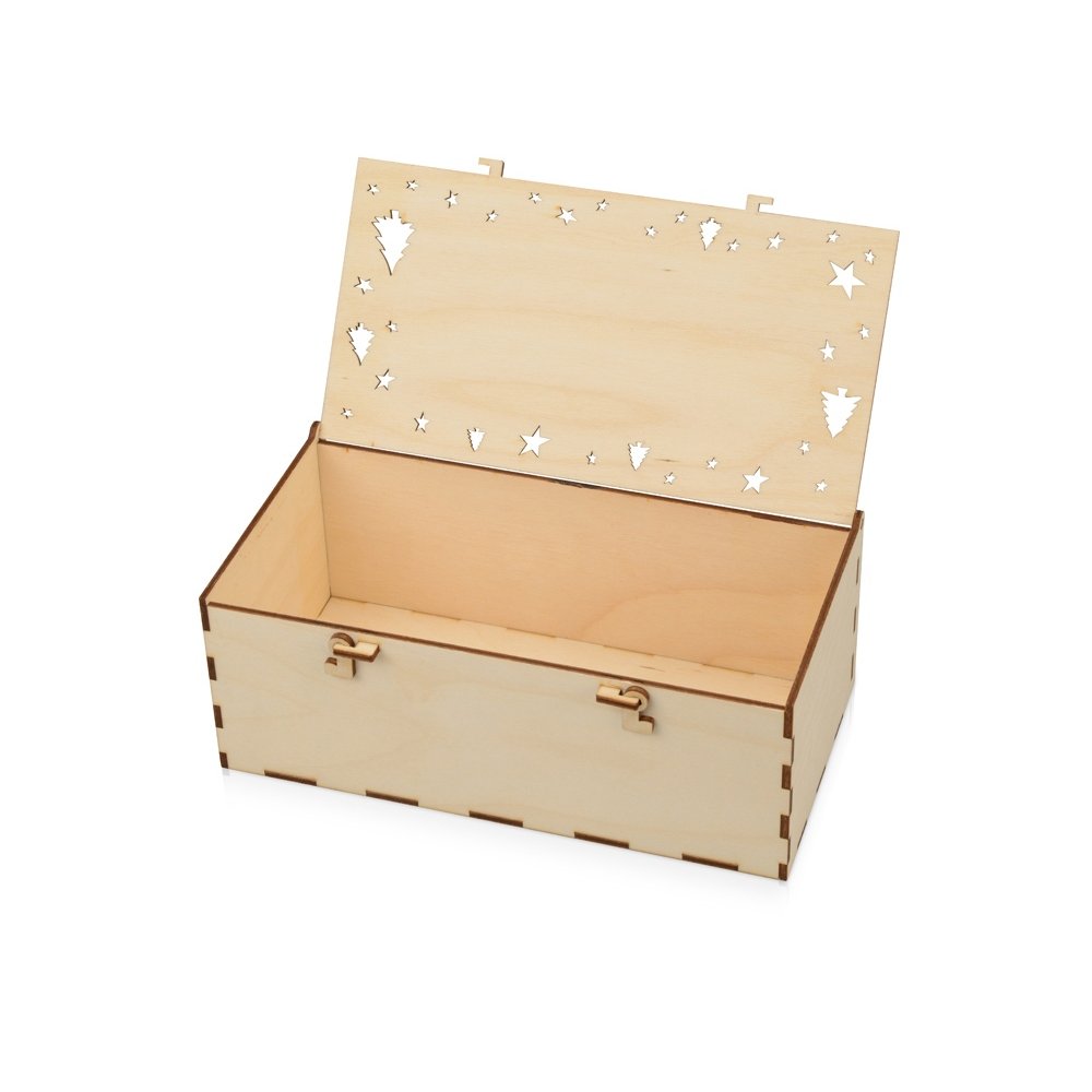 - Подарочная коробка в виде небольшой шкатулки подходит для нанесения информации или логотипа на крышке. Орнамент в виде звездочек на крышке украсит ваш подарок, а если внутрь положить несколько электронных свечей, то тени от света свечей оставят причудливые узоры на стенах и потолке. Оригинальная подарочная упаковка «Шкатулка» - отлично подойдет как для новогодних подарков, так и для презентов по любому другому поводу.