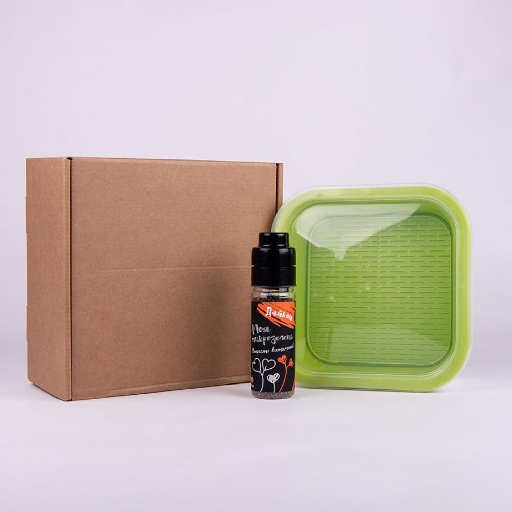 Подарочный комплект для проращивания микрозелени: проращиватель, семена дайкона Зеленый арт. 33817/дайкон