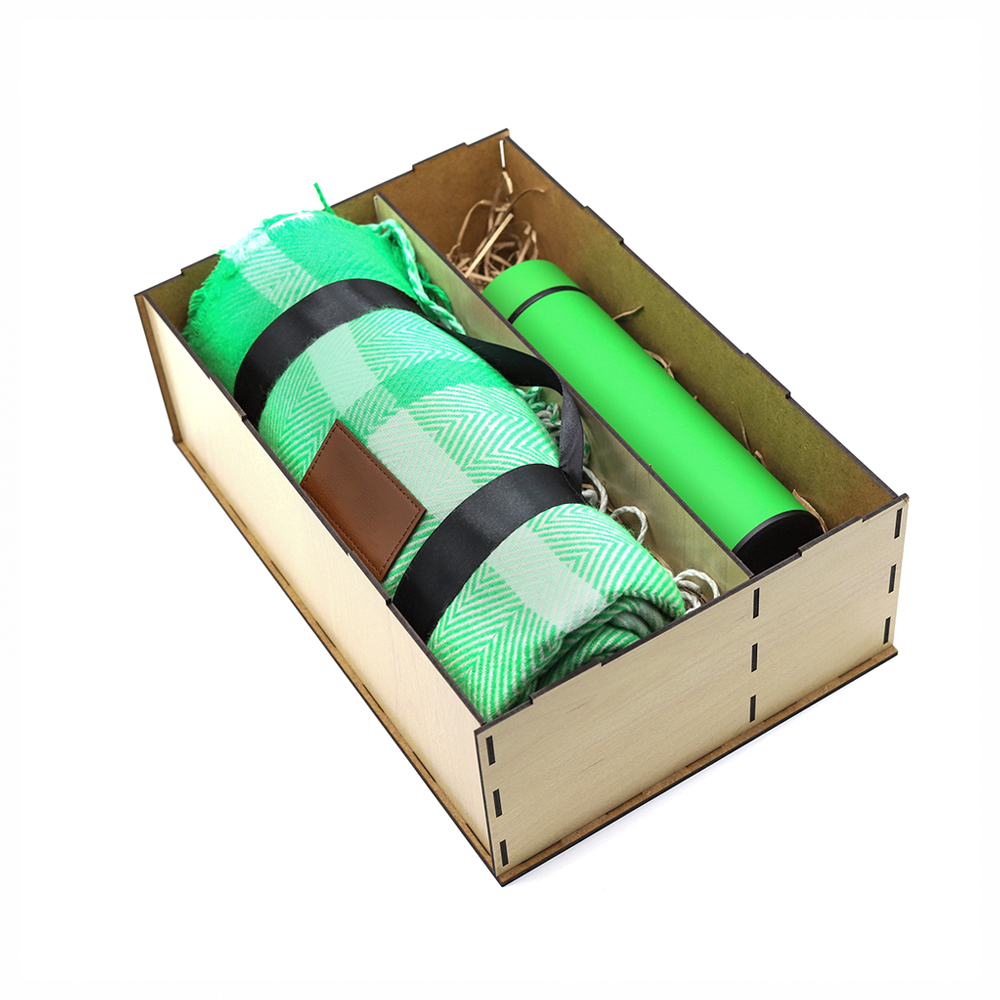 Состав набора: Упаковка из древесноволокнистной плиты (2 отделения) - 1 шт. Плед Glama - 1 шт. (Артикул: 16005.04) Термос Indy - 1 шт. (Артикул: 5020.04) Бумажная стружка