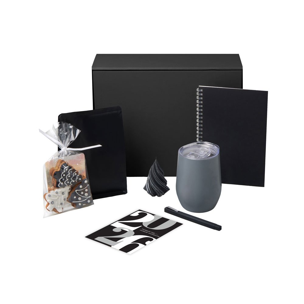 - Новый год — новые моменты, которые хочется прожить по-настоящему. Вспомните детство, когда мы никуда не спешили, наслаждались каждым мгновением и делали то, что нам нравилось. Наборы серии Re: напоминают: важнее всего человек, а не его роль. Они дарят возможность замедлиться, отложить гаджеты и насладиться настоящим. Пусть новогоднее время станет паузой, наполненной тишиной, теплом и моментами, которые восстанавливают перед новым годом. Каждый набор — как мини-ритуал: согреться, замедлиться, почувствовать себя, поблагодарить и восстановиться после года, полного скорости, дедлайнов и шума. Это не о деловом «спасибо» — это о настоящем внимании. Это о том, чтобы сказать: «Я вижу, сколько ты сделал. А теперь — время для тебя». Набор «Re:Start» - о маленьких ритуалах, которые делают каждый день особенным. Налейте в термокружку любимый ароматный кофе, вдохните аромат и позвольте себе немного тишины. Остановитесь, подумайте, что вы чувствуете и чего хотите. Этот блокнот можно использовать как личный дневник, место для идей, или как рабочий блокнот в новом году — ведь начинать писать с чистого листа всегда особенно приятно. Имбирные пряники добавят сладкую нотку уюта и напомнят: даже в привычных днях можно находить тепло и вдохновение.
