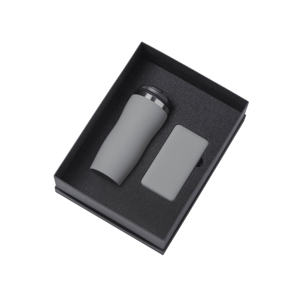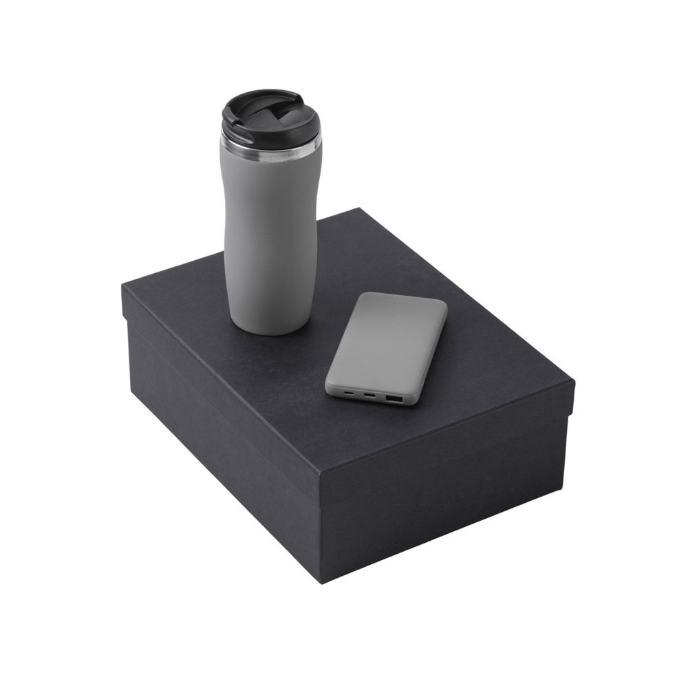 - Термокружка нержавеющая cталь с покрытием soft touch/внешний аккумулятор пластик с покрытием soft touch/коробка картон переплетный 1,5 мм/дизайнерская бумага.