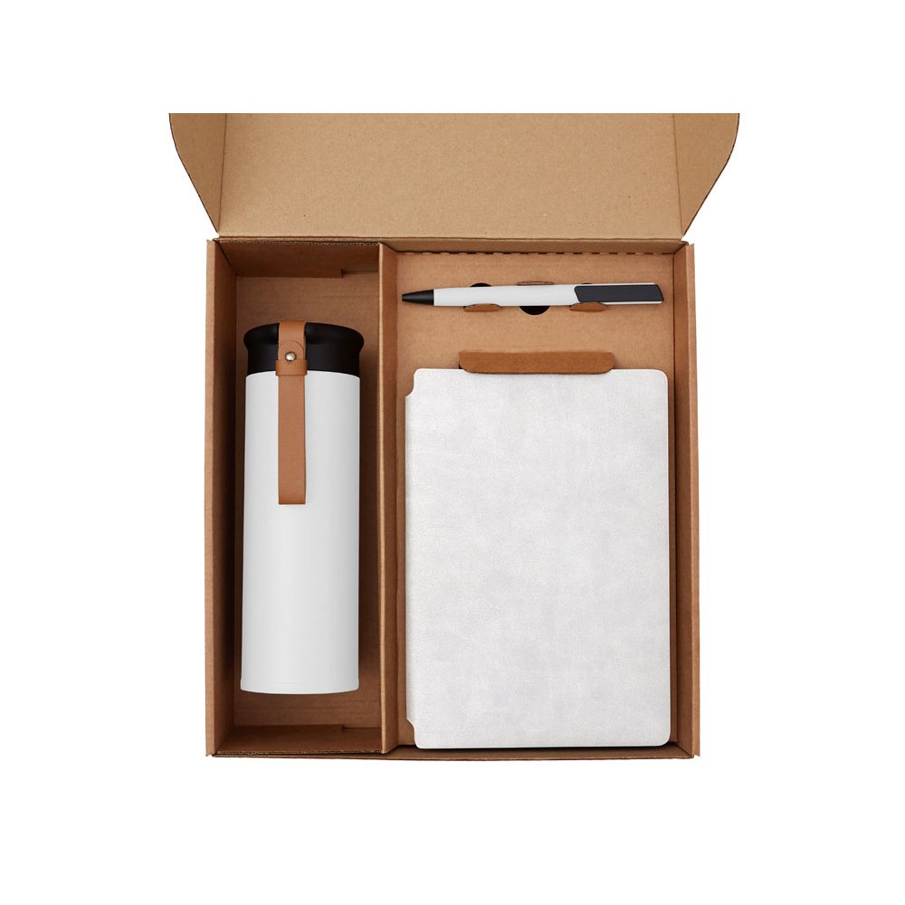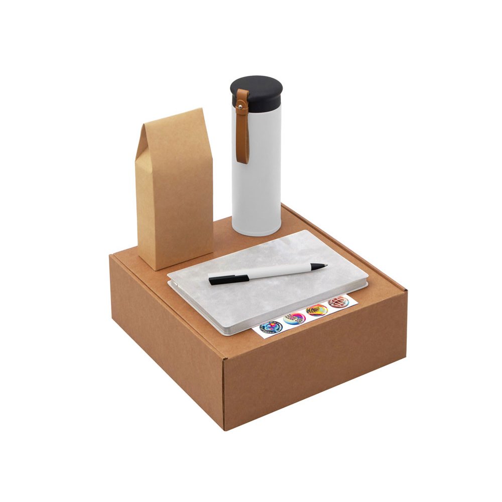 - Функциональный и сбалансированный набор для сотрудников, партнёров или клиентов — отлично подойдёт для welcome-боксов, тимбилдингов, внутренних мероприятий и корпоративных праздников. Состав набора: • Блокнот — удобный формат для записей, брифов и ежедневных задач • Ручка — классическая, с необычным слайдером и приятной soft-touch поверхностью делает письмо более комфортным. • Термос из долговечной нержавеющей стали с двойными стенками, вакуумная изоляция между которыми помогает сохранять температуру напитков в течение долгого времени. Термос идеально подходит для заваривания чая: специально для этого в комплекте идет металлическое ситечко с ручкой, которое не пропустит ни одной чаинки. • Классический чёрный байховый чай поможет взбодриться и освежить мысли, поэтому его можно пить утром для лёгкого пробуждения или днём — чтобы восстановить силы и сосредоточиться. Вечером он станет приятным завершением дня в сочетании с десертом или лёгкими закусками. • Набор стикеров — для ярких акцентов и персонализации вещей; • Универсальный ложемент обеспечивает аккуратное размещение и надёжную фиксацию элементов, делая набор эффектным и презентабельным при вручении. • Дополнительное преимущество — набор доступен в конструкторе наборов: компоненты можно заменить и собрать индивидуальный вариант под стиль компании или вкусы получателя. • Готовое решение для корпоративных подарков • Все элементы функциональны и актуальны для повседневного использования