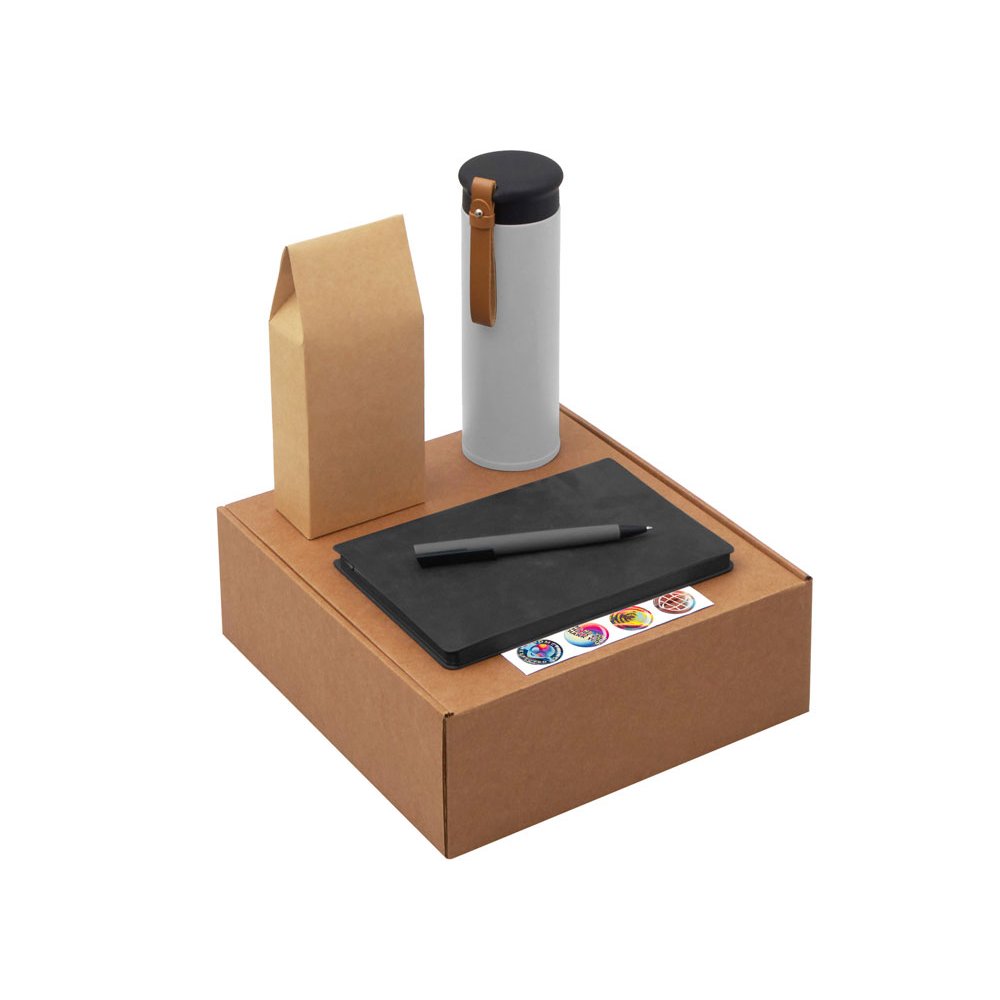 - Функциональный и сбалансированный набор для сотрудников, партнёров или клиентов — отлично подойдёт для welcome-боксов, тимбилдингов, внутренних мероприятий и корпоративных праздников. Состав набора: • Блокнот — удобный формат для записей, брифов и ежедневных задач • Ручка — классическая, с необычным слайдером и приятной soft-touch поверхностью делает письмо более комфортным. • Термос из долговечной нержавеющей стали с двойными стенками, вакуумная изоляция между которыми помогает сохранять температуру напитков в течение долгого времени. Термос идеально подходит для заваривания чая: специально для этого в комплекте идет металлическое ситечко с ручкой, которое не пропустит ни одной чаинки. • Классический чёрный байховый чай поможет взбодриться и освежить мысли, поэтому его можно пить утром для лёгкого пробуждения или днём — чтобы восстановить силы и сосредоточиться. Вечером он станет приятным завершением дня в сочетании с десертом или лёгкими закусками. • Набор стикеров — для ярких акцентов и персонализации вещей; • Универсальный ложемент обеспечивает аккуратное размещение и надёжную фиксацию элементов, делая набор эффектным и презентабельным при вручении. • Дополнительное преимущество — набор доступен в конструкторе наборов: компоненты можно заменить и собрать индивидуальный вариант под стиль компании или вкусы получателя. • Готовое решение для корпоративных подарков • Все элементы функциональны и актуальны для повседневного использования