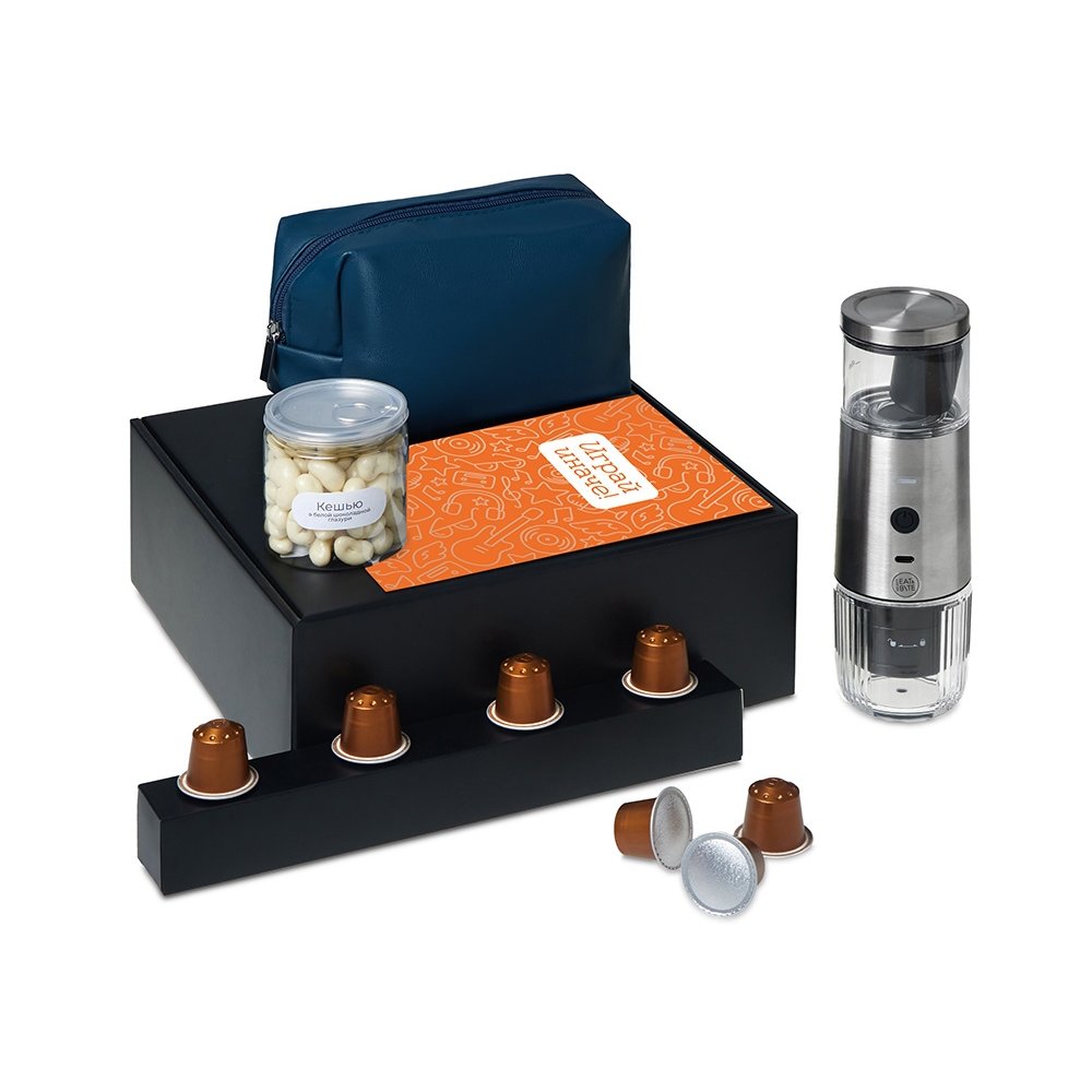 - Наборы серии Re: напоминают: важнее всего человек, а не его роль. Они дарят возможность замедлиться и насладиться настоящим. Каждый набор — как мини-ритуал: согреться, почувствовать себя, поблагодарить и восстановиться после дней, полных скорости, дедлайнов и шума. Re:y. — Универсальные наборы для осознанного отдыха, которые помогут отстраниться от информационного шума, замедлиться и подарить себе время на настоящую жизнь и личные моменты счастья. Набор "Re:y. Boost" о бодрости, энергии и маленьких ритуалах, которые можно взять с собой. Портативная кофемашина и кофе в капсулах позволяют приготовить ароматный напиток дома, в офисе или на прогулке. Кешью в глазури добавляет сладкую нотку, а косметичка позволяет взять любимые вещи с собой, куда бы вы ни отправились.. Этот набор превращает привычный утренний ритуал в момент бодрости и комфорта, где бы вы ни были.