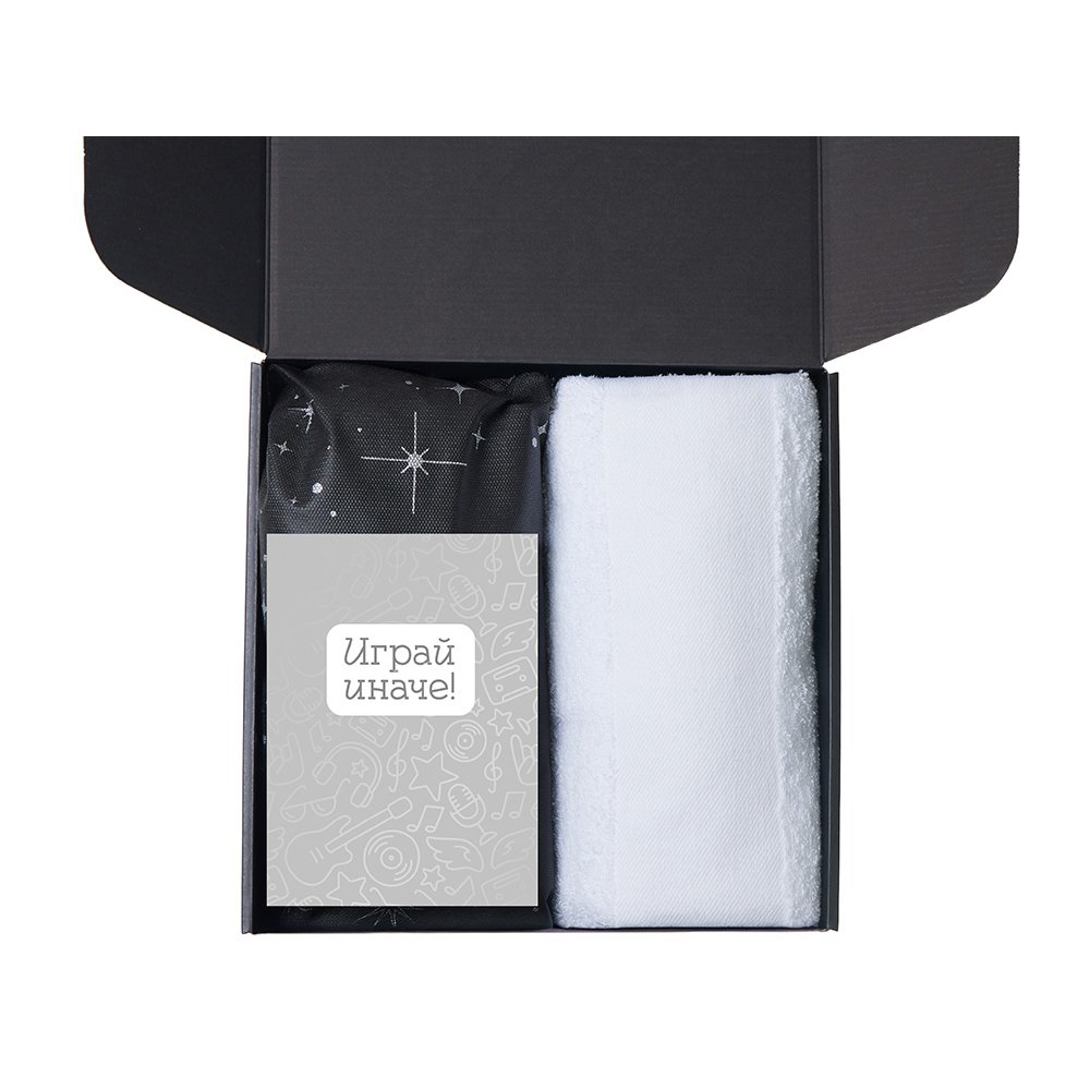 - Полотенце 100% хлопок; открытка бумага; мешок нетканый материал (спанбонд)