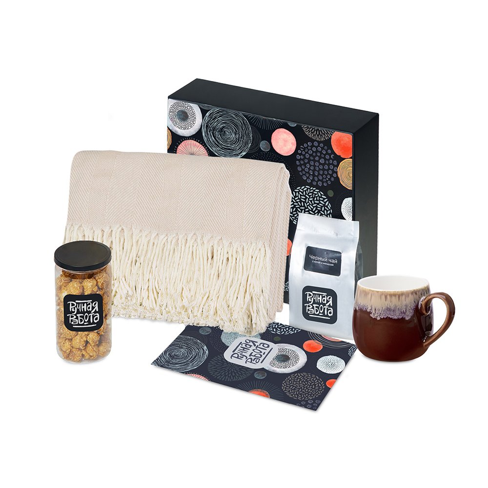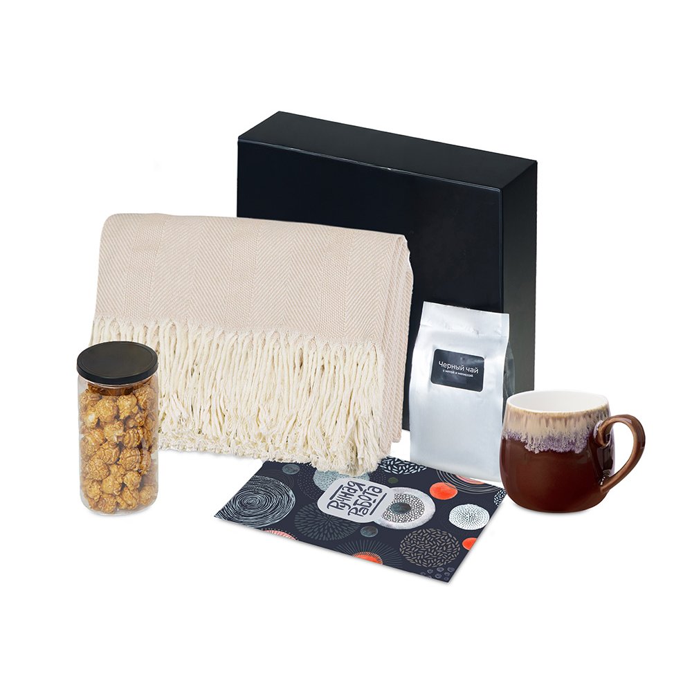 - Плед 100% хлопок/кружка костяной фарфор с покрытием soft touch,чай пластик/попкорн пластик/металл/мешок нетканый материал (спандонд)/коробка картон