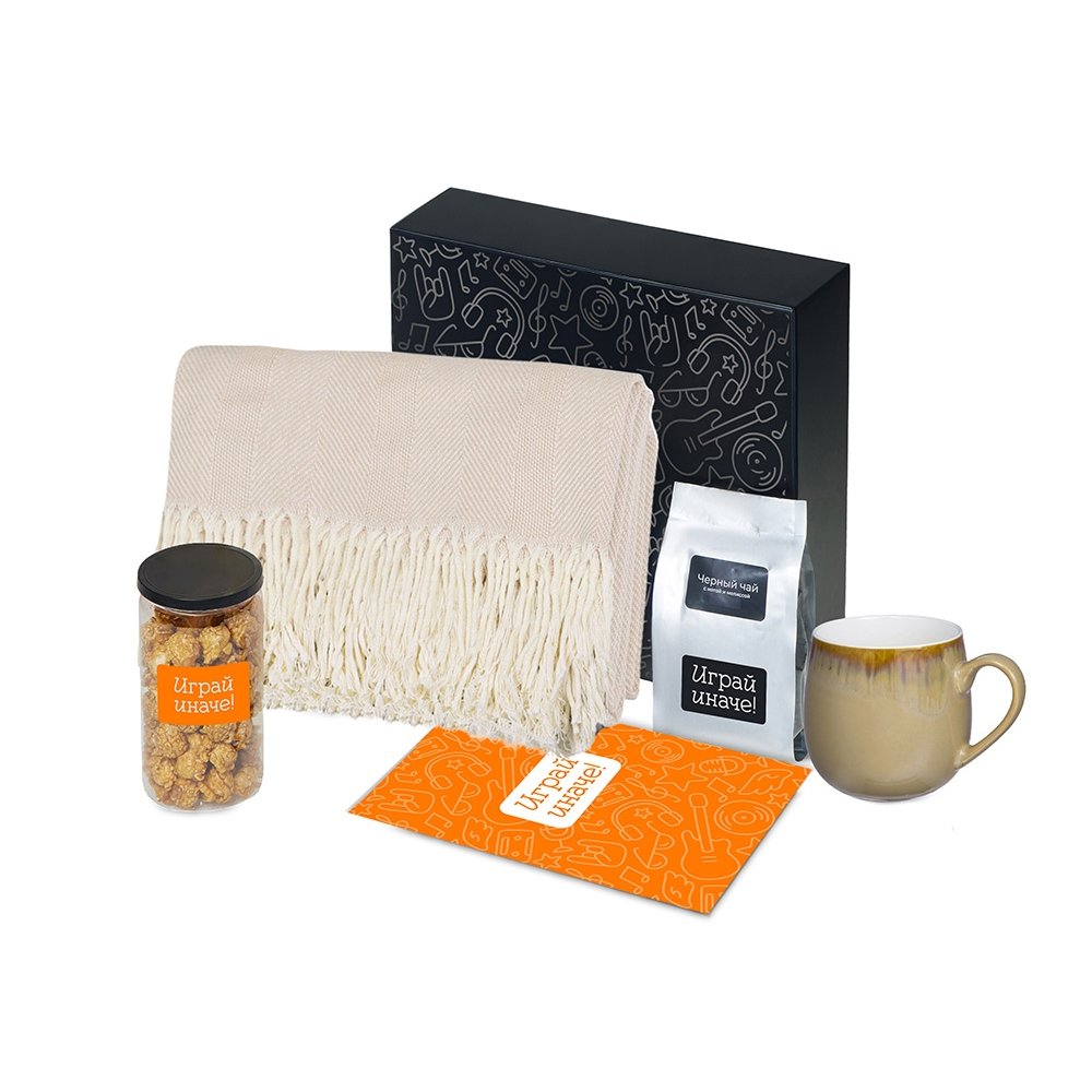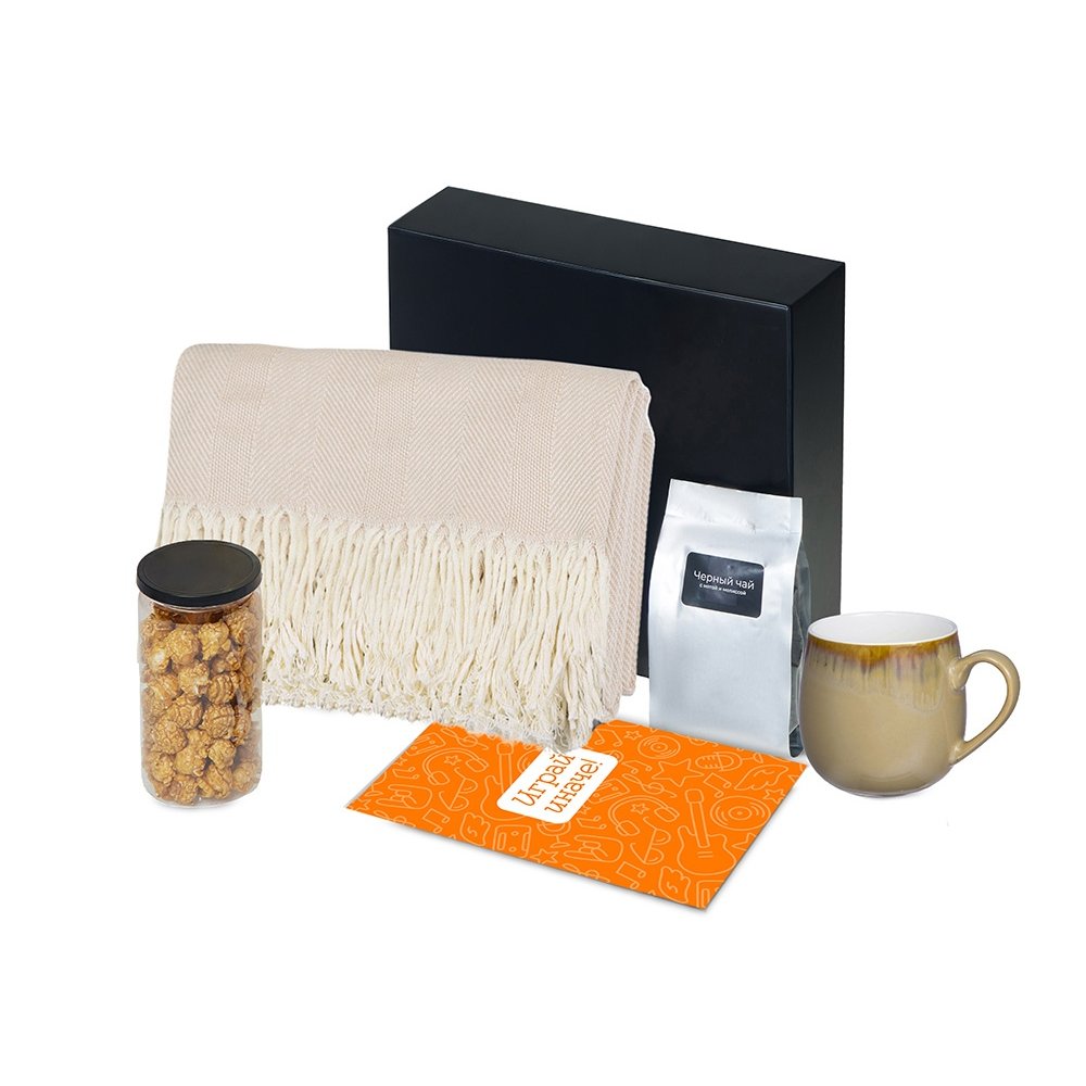 - Плед 100% хлопок/кружка костяной фарфор с покрытием soft touch,чай пластик/попкорн пластик/металл/мешок нетканый материал (спандонд)/коробка картон
