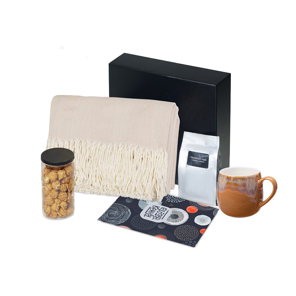 - Плед 100% хлопок/кружка костяной фарфор с покрытием soft touch,чай пластик/попкорн пластик/металл/мешок нетканый материал (спандонд)/коробка картон