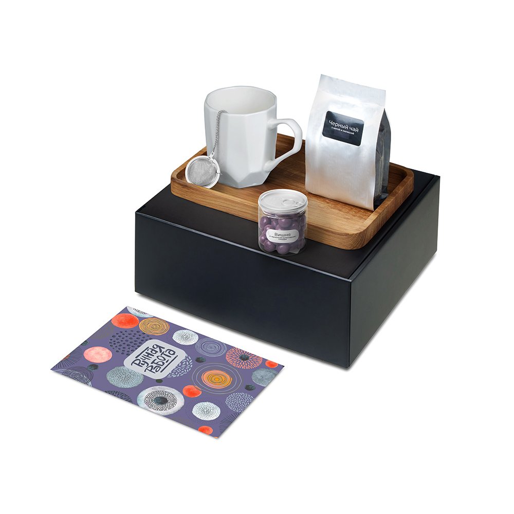 - Кружка костяной фарфор/чай пластик/ситечко для чая нержавеющая сталь/поднос дуб/мешок нетканый материал (спанбонд)/коробка картон