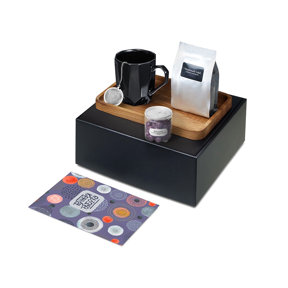 - Кружка костяной фарфор/чай пластик/ситечко для чая нержавеющая сталь/поднос дуб/мешок нетканый материал (спанбонд)/коробка картон